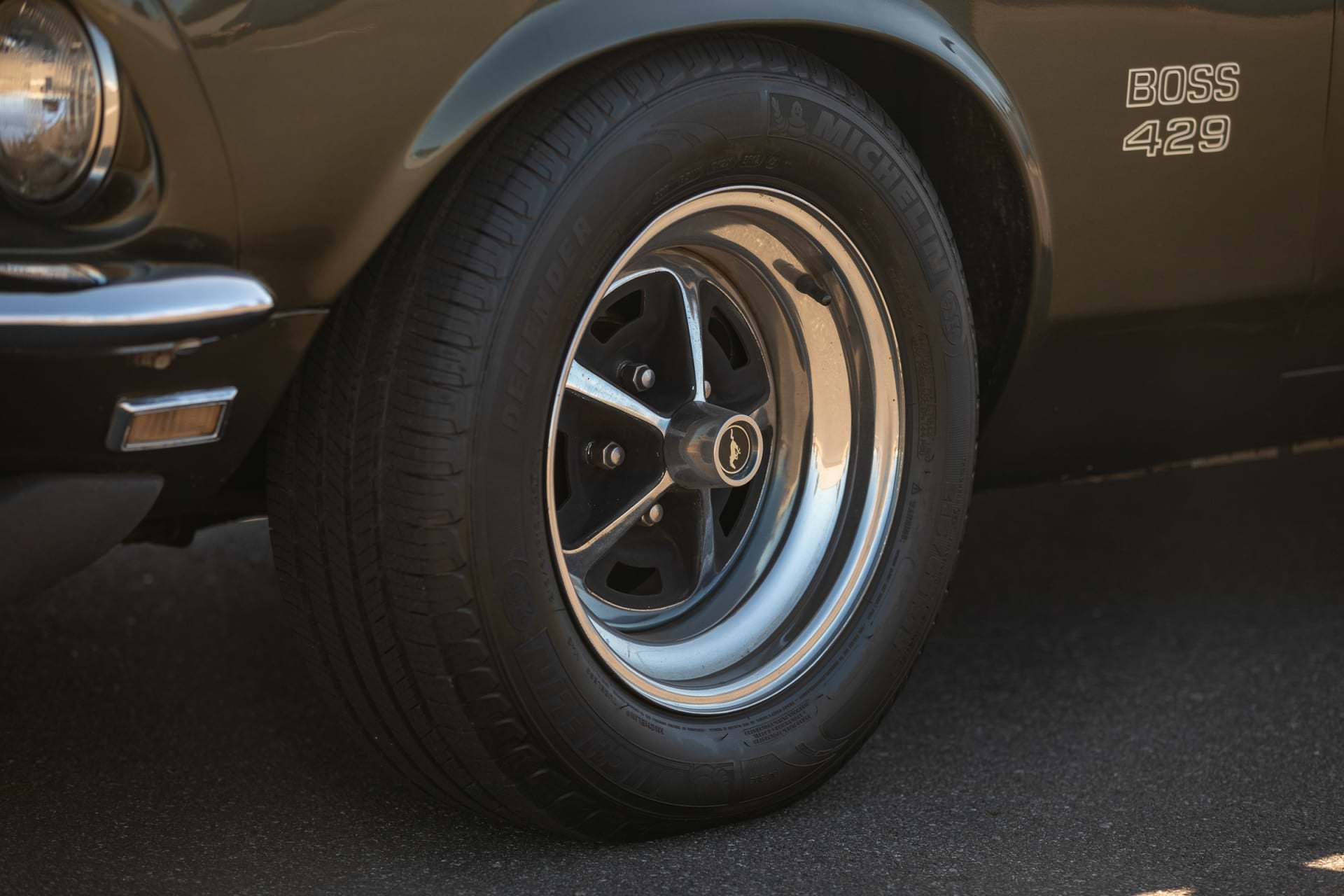 The Boss 429 Mustang made its debut in 1969 – instead of wild graphics or spoilers, it had relatively understated “Boss 429” decals on the front fenders, a functional hood scoop, and Magnum 500 wheels. Inside, it was much like a standard Mustang, though all examples came with a 4-speed manual gearbox and a 3.91 rear axle ratio.