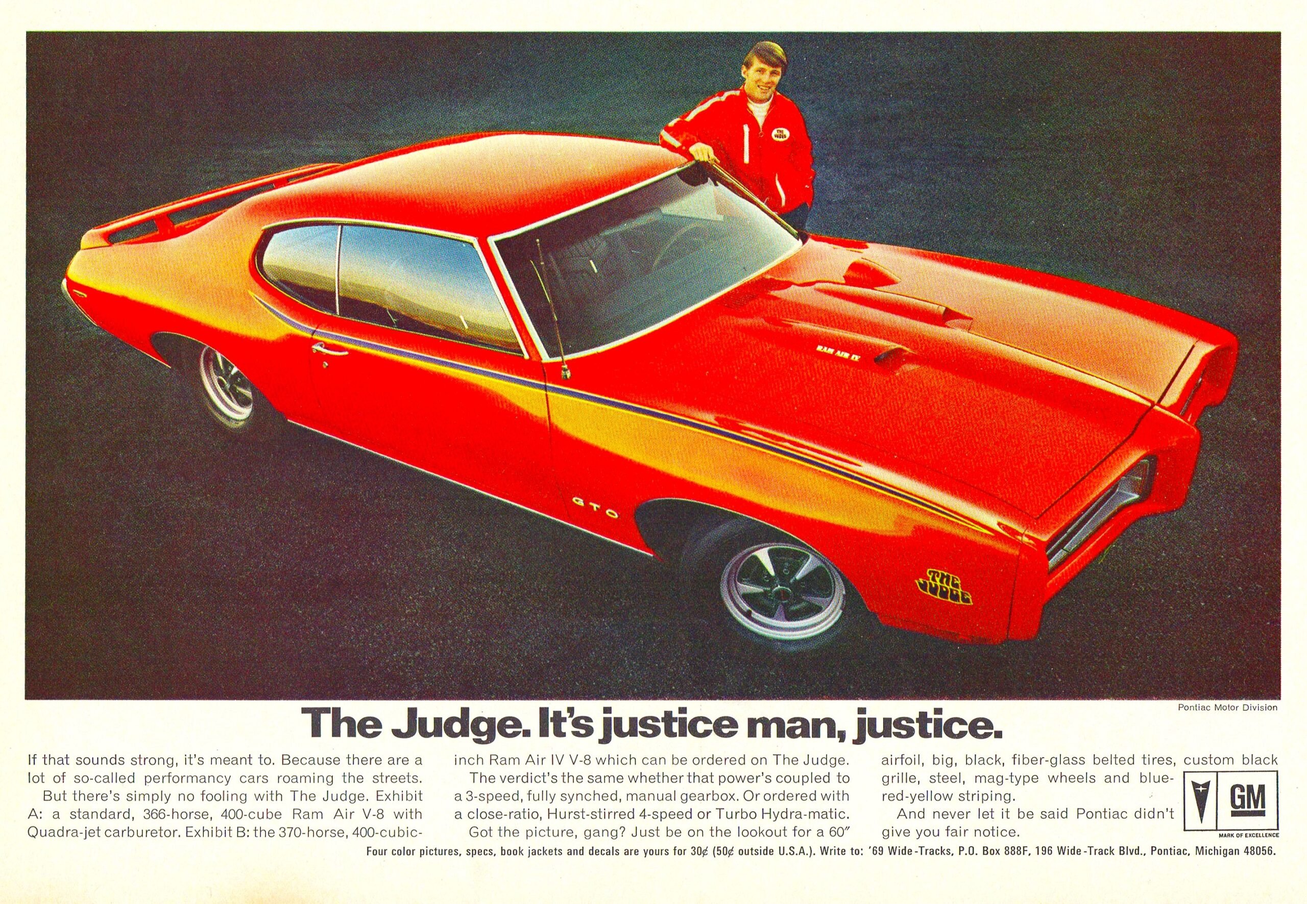 - The 1969 Pontiac GTO Judge Ram Air IV was the top-tier version of Pontiac’s famous muscle car, created at a time when Detroit’s horsepower race was at its peak. It combined good looks with near-race-spec hardware and was among the most potent American production cars of its year, with a 400 cubic inch V8 officially rated at 370 bhp.