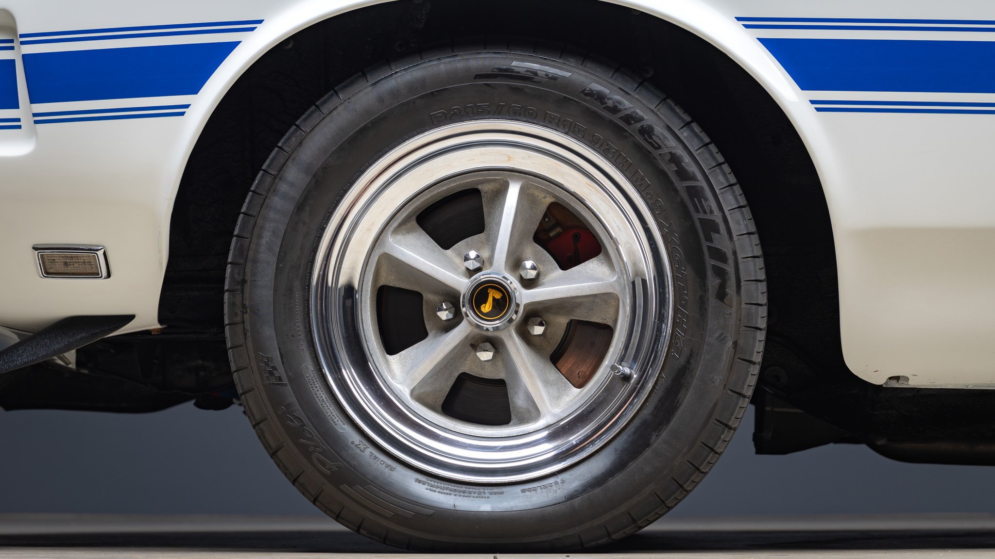 The body has Shelby’s trademark fiberglass nose, a vented hood, a chin spoiler, and a trunk lid spoiler, along with fog lights and Shelby badging. Suspension and braking systems, including the power-assisted front discs, were overhauled at the same time, ensuring safe, reliable braking ability – important when you consider what’s under the hood.