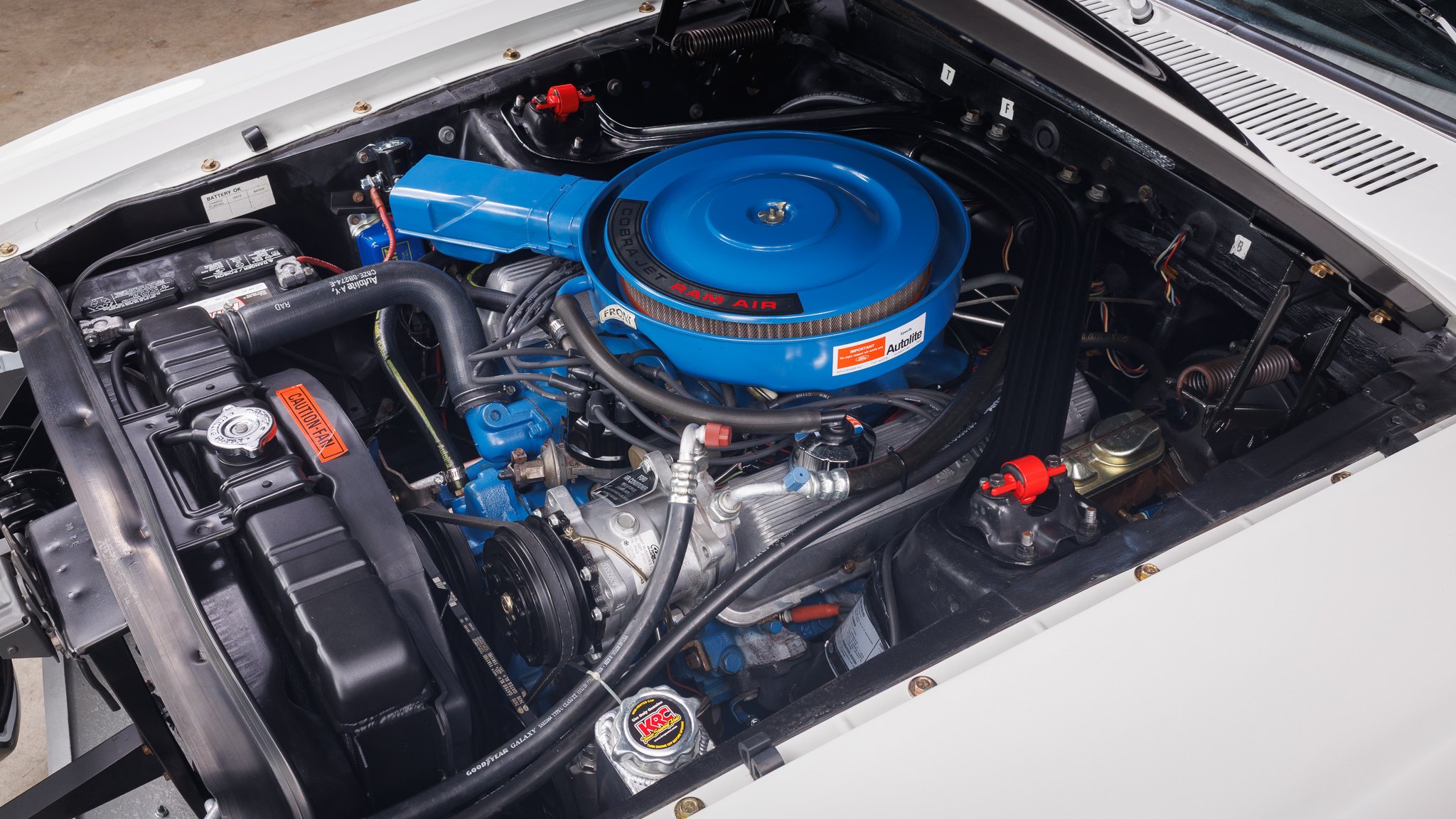 - Power comes from the 428 cubic inch Cobra Jet V8 topped with a four-barrel carburetor and ram-air intake. Rated at 335 bhp and 440 lb ft of torque when new, the engine was rebuilt during restoration and recently serviced with new ignition components, valve cover gaskets, and fresh fluids. Suspension and braking systems were also rebuilt to match.