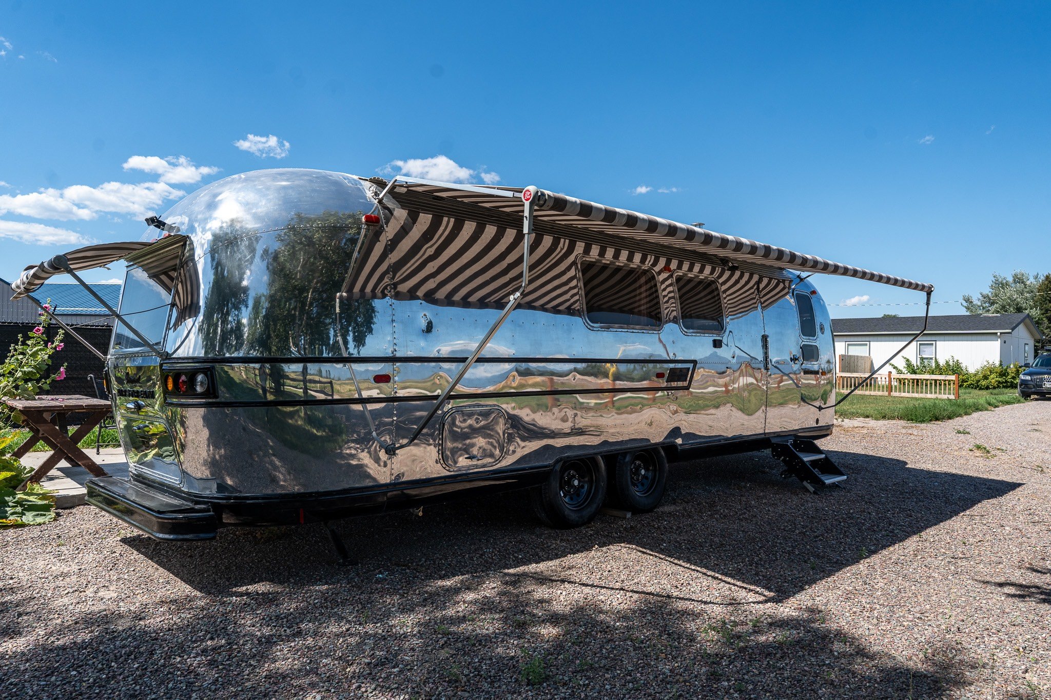 This is a 1969 Airstream International Land Yacht Ambassador, it’s a 29 foot travel trailer that underwent a thorough restoration in 2022. The work included removing the body from the chassis, refinishing the frame, polishing the aluminum body panels, and installing new stabilizers, axles, brakes, belly pan, and tires.