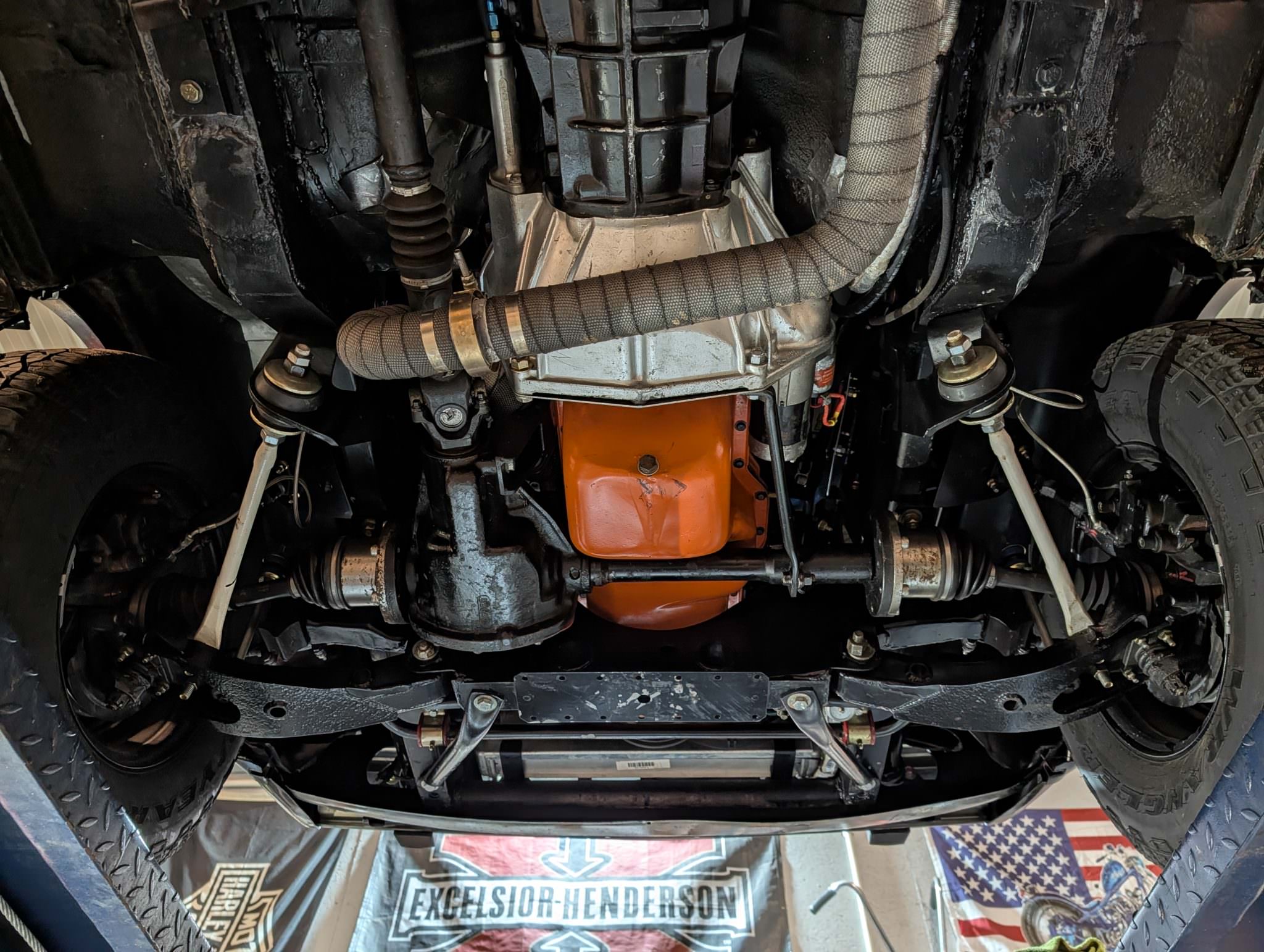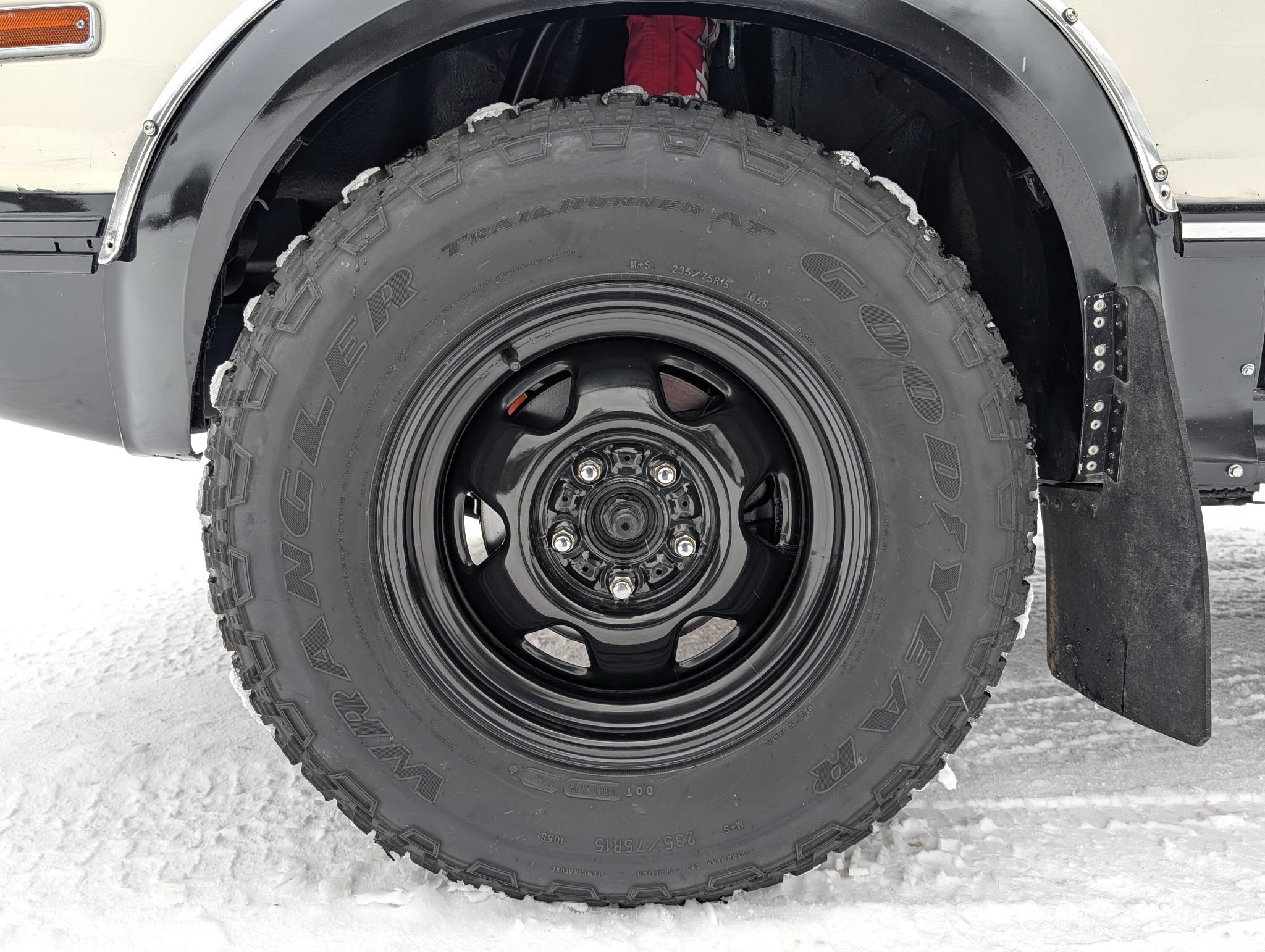 The suspension has also been upgraded, with Fox dampers with Eibach springs up front, fabricated upper control arms, and boxed lower control arms. It has four-wheel disc brakes that use a Wilwood master cylinder and proportioning valve, Volvo-sourced electric power steering, and it rides on 15″ wheels shod with 235/75 Goodyear Wrangler TrailRunner AT tires.