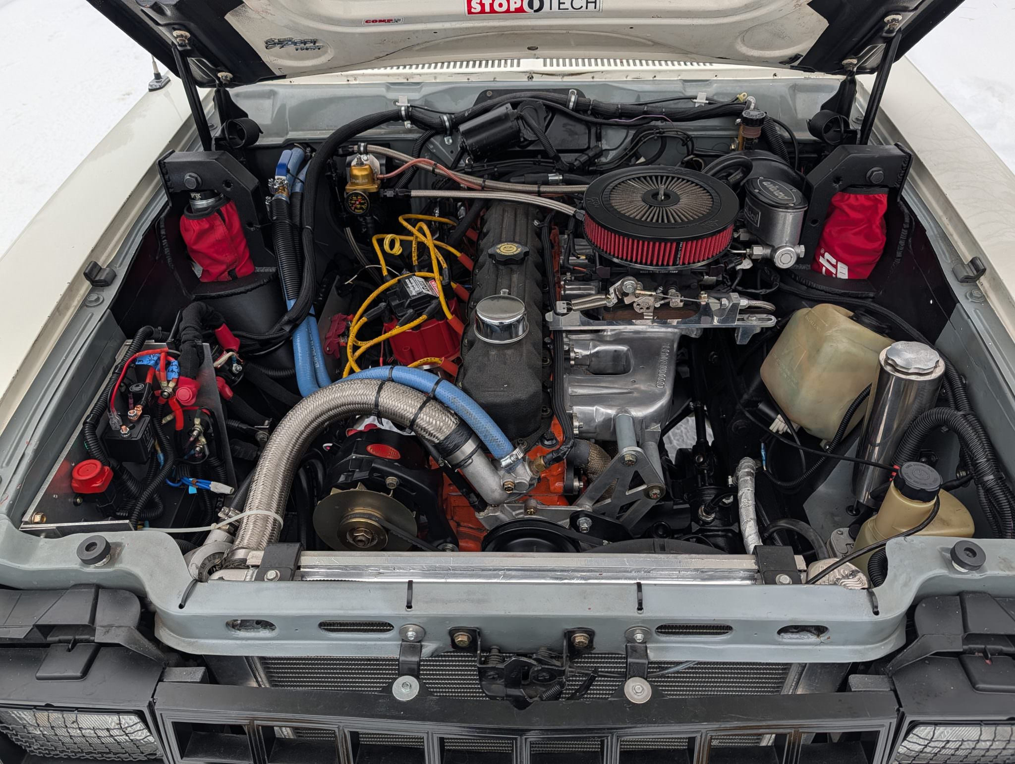 The 1985 AMC Eagle you see here has been given a series of upgrades including a Jeep Cherokee-sourced 4.0 liter inline-six that was expanded out to 4.6 liters, and power is sent back through an AX15 5-speed manual transmission linked to an NP242 transfer case, with Yukon 3.08 gearing, and Tom Woods driveshafts.