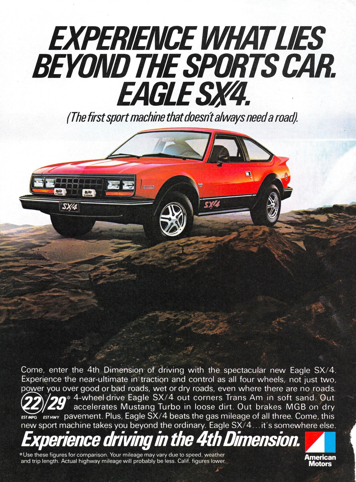 - Launched for the 1980 model year, the Eagle was offered as a sedan, coupe, and wagon, later joined by SX/4 and Kammback variants. Power initially came from AMC’s 4.2 liter inline-six, offering good durability and torque, while Select Drive systems and four-cylinder options later expanded the engine offerings.