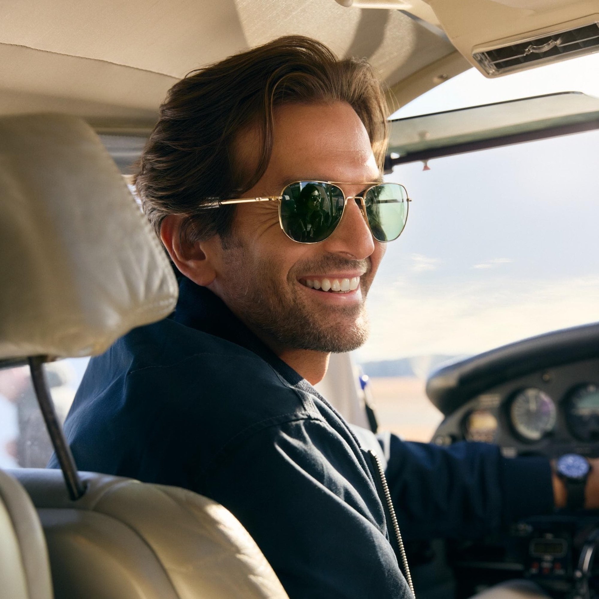 These are the Original Pilot sunglasses by American Optical. Each pair is made in the USA, and they were standard issue to US military pilots and astronauts for decades – including the Apollo 11 crew who would be the first to set foot on the Moon.