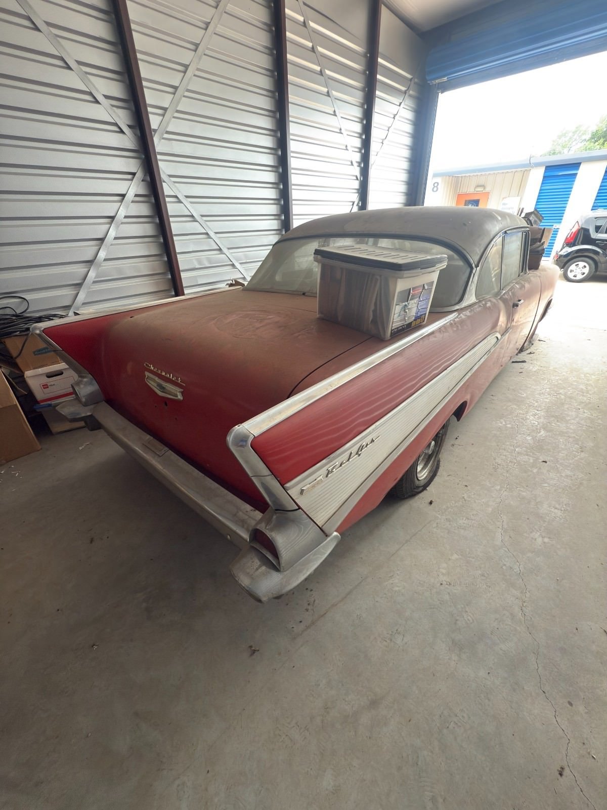 - This barn find is an original 1957 Chevrolet reportedly stored long term and now offered on eBay as a full restoration project. It appears largely complete, with its V8 engine, transmission, body, chassis, and much of the interior present. The car is listed broadly as Bel Air/150/210, though trim suggests Bel Air specification pending verification.