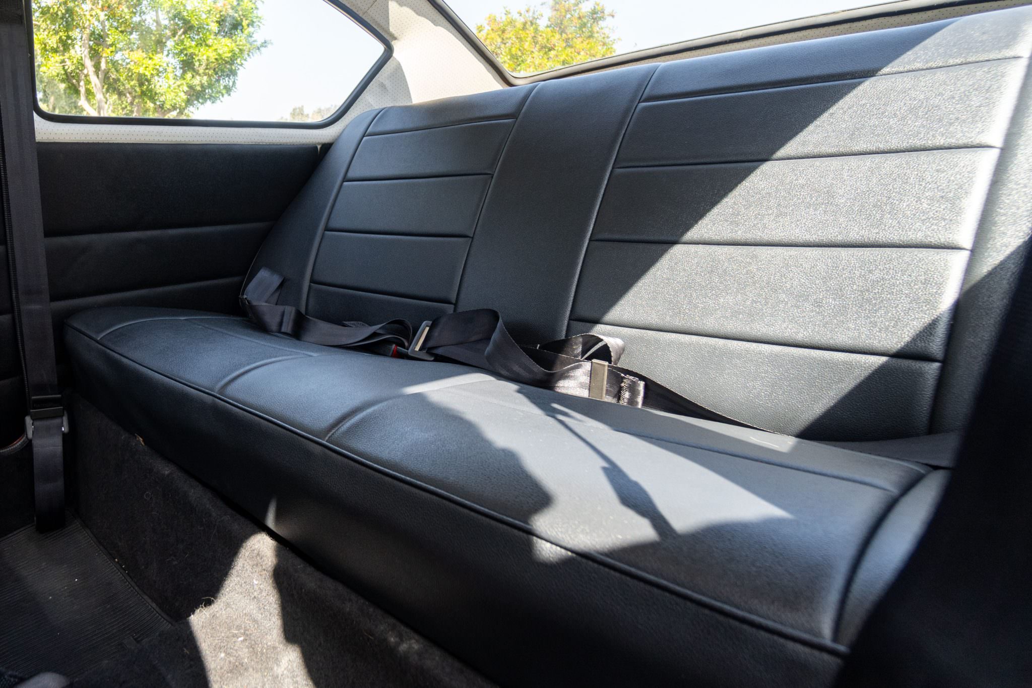 Inside, the TL is trimmed in black leatherette with front buckets and a rear bench. Equipment includes crank windows, rubber floor mats, and three-point front seat belts. A Kenwood Bluetooth stereo is installed but not connected currently, and no speakers are yet fitted.
