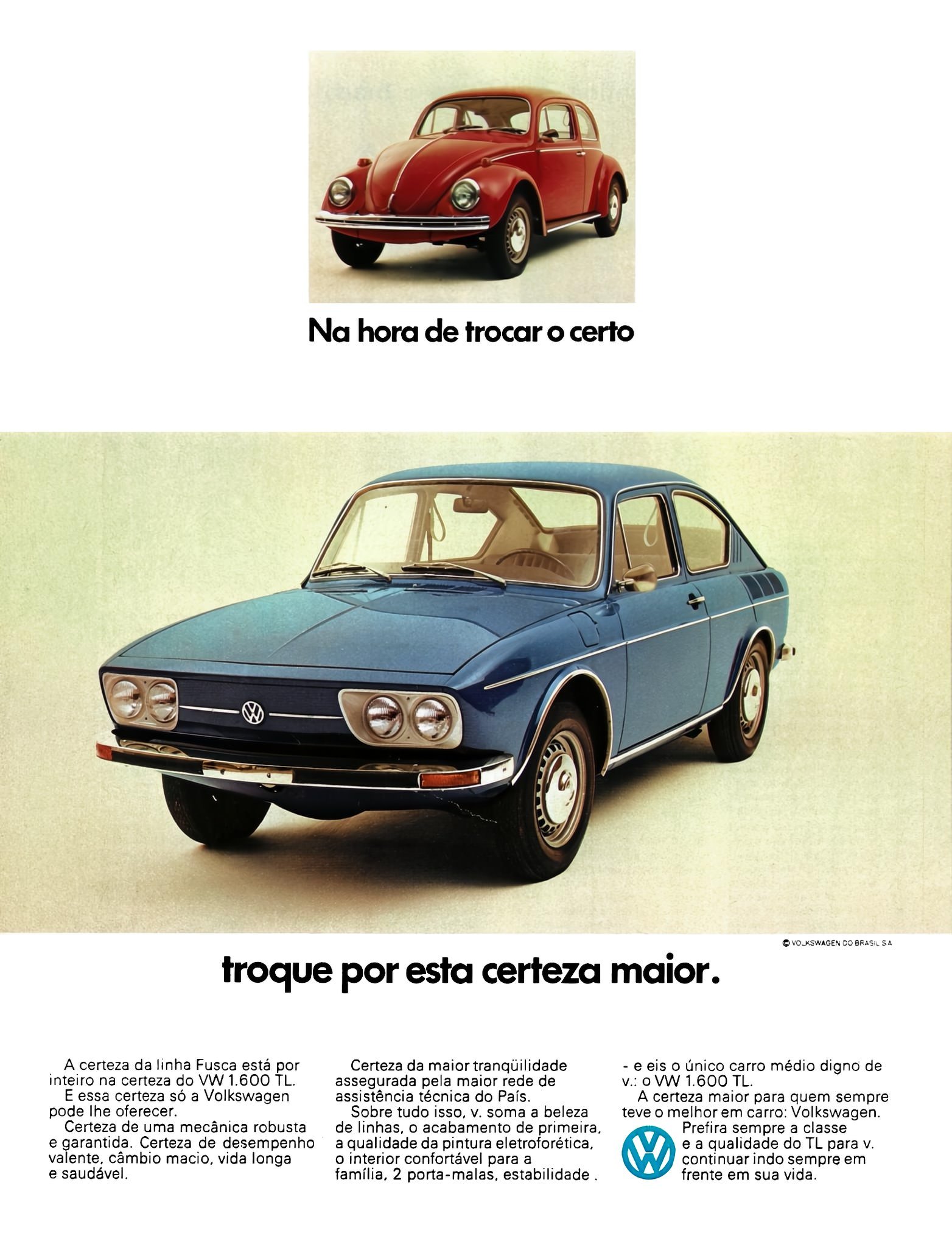 - “Volkswagen do Brasil” introduced the Type 3 line in the late 1960s, starting with the “Coffin Joe” 1600 sedan before expanding to the TL fastback and Variant wagon. Unlike European counterparts, these cars kept their Beetle-derived torsion bar and swing axle suspension, prioritizing low costs and ease of servicing in a parts-limited market. By 1977 the TL was replaced by the Brasília, though the Variant II continued into the early 1980s.