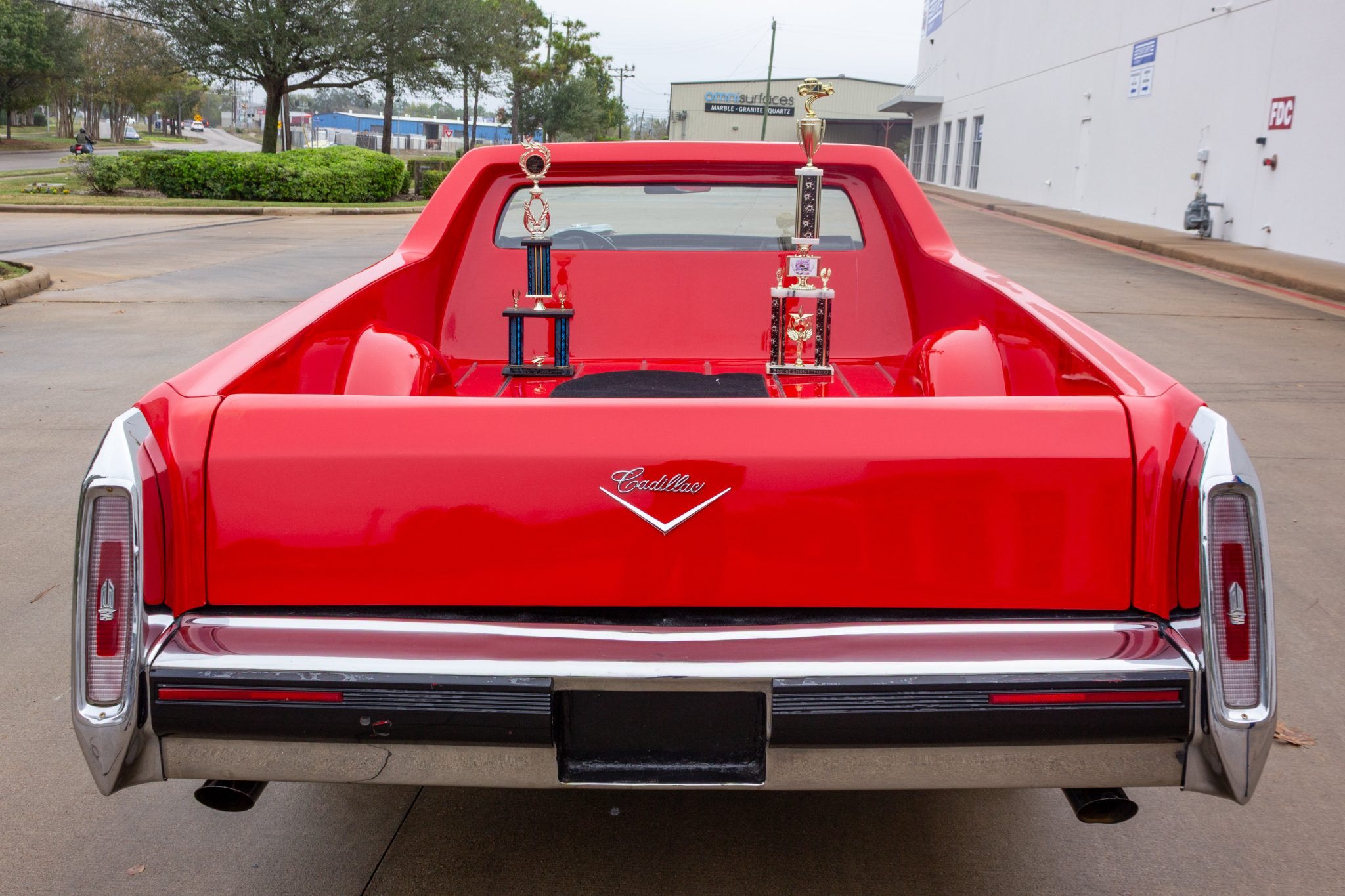 - This is a heavily customized 1984 Cadillac Coupe DeVille that has been transformed into an El Camino-style pickup. The car has a 1990 Fleetwood Brougham front clip, custom rear bodywork, and a layout clearly intended to stand out at shows while remaining usable as an everyday driver.