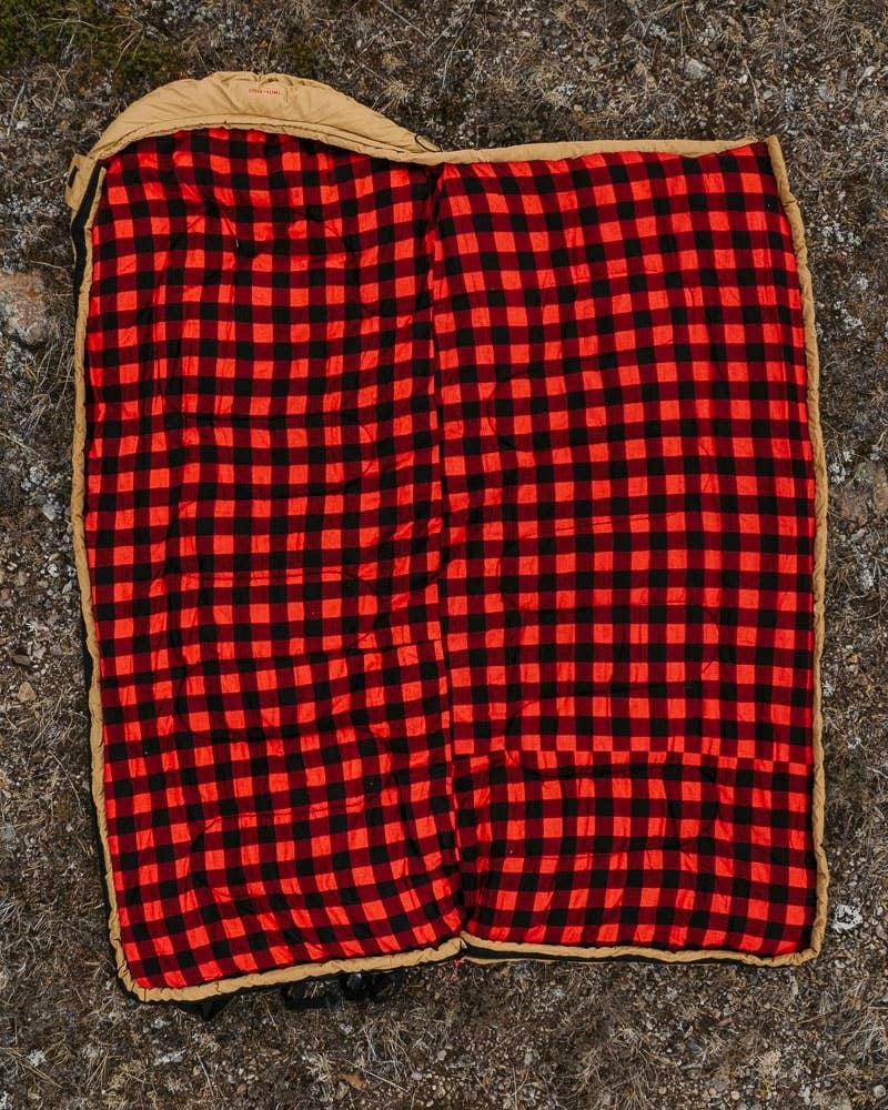 This is the Camp Roll Sleeping Bag from Montana-based company Smith + Rogue. It’s built with a 100% cotton canvas outer shell that has a DWR (durable water repellency) coating.