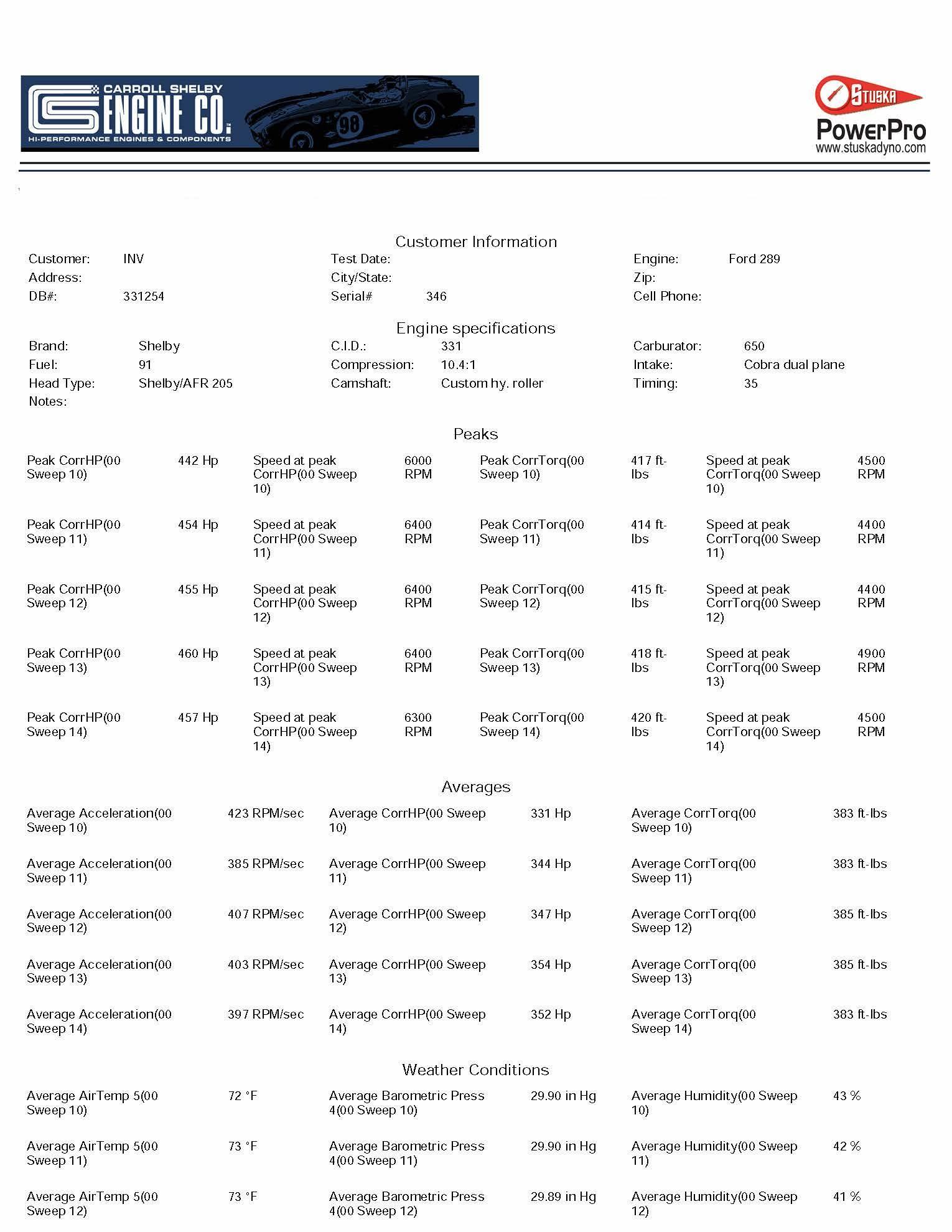 Shelby initially served as president, with longtime collaborator Don McCain as vice president, and the shop accepted customer-owned Windsor, 351C, and FE engines for overhauls, short-block and long-block builds, and dyno tuning. Each overhauled or rebuilt engine received a “Rebuilt by Carroll Shelby Engine Company” tag, and every dyno test produced a certification sheet signed by Carroll Shelby up until his passing in 2012.