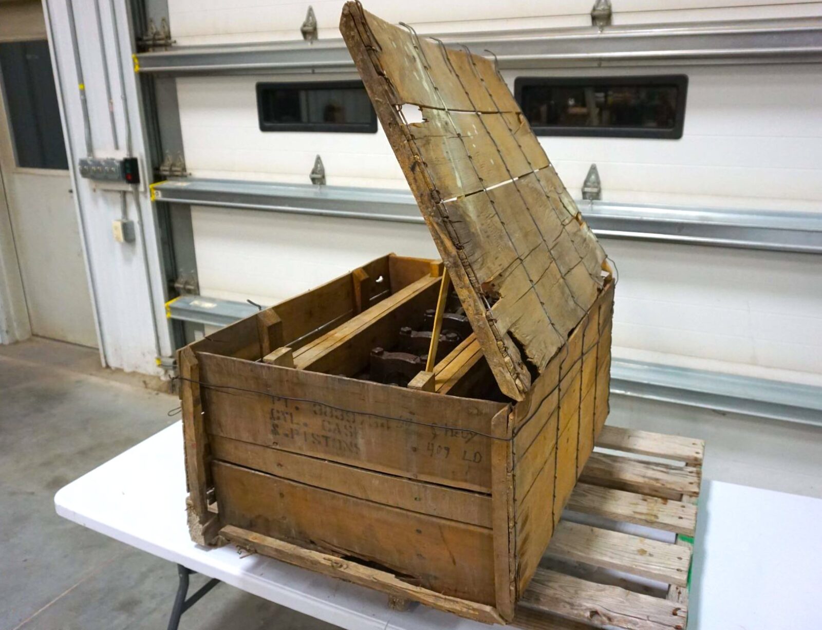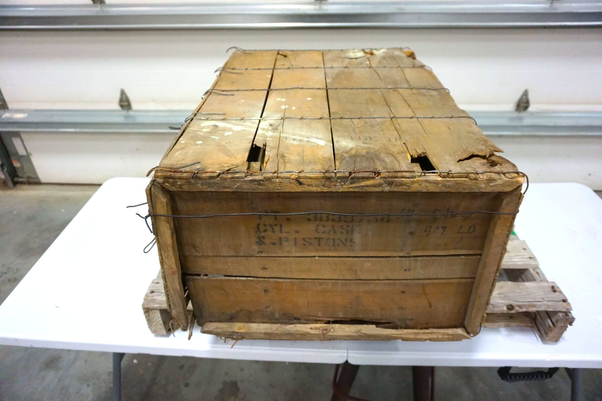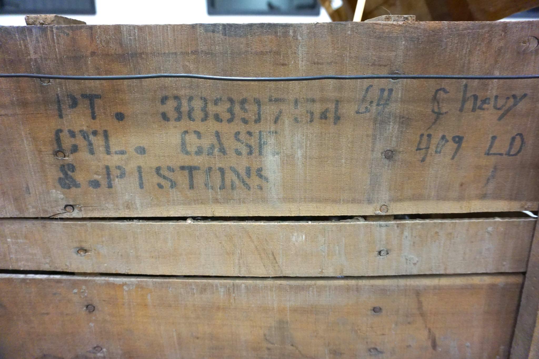 As noted in the introduction, this is a rare Chevrolet 409 V8 short block that has remained in its factory crate in unused condition since it was delivered new in 1964.