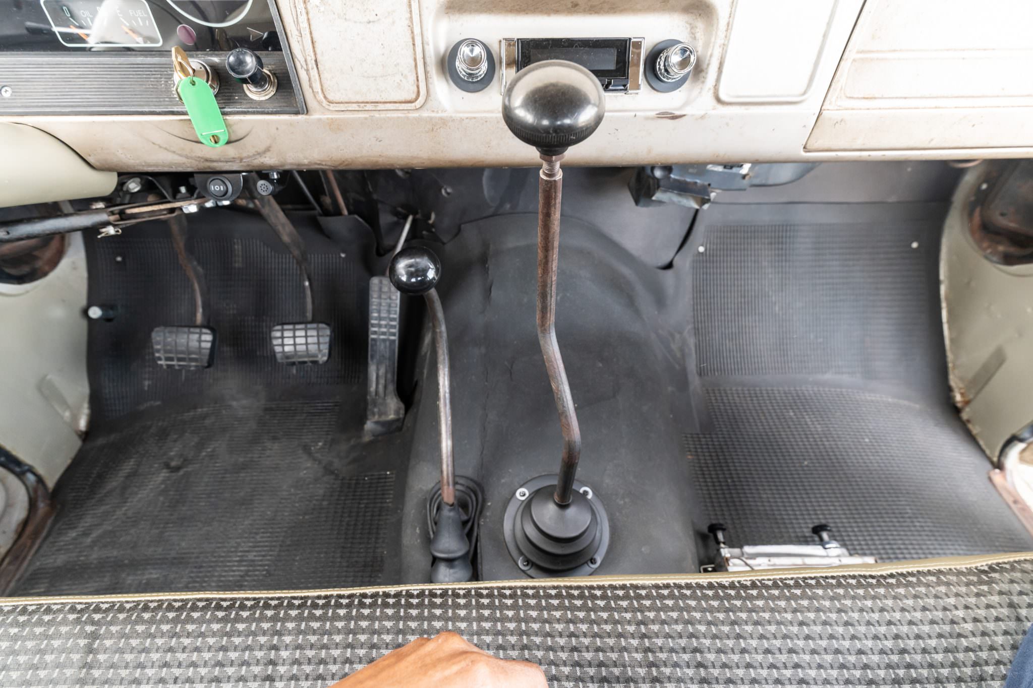 Power is routed back through a 5-speed manual transmission and a dual-range transfer case, to either the rear wheels or all four wheels. The truck also has uprated suspension and brakes, plus plenty of other work done under that well-patinated body.