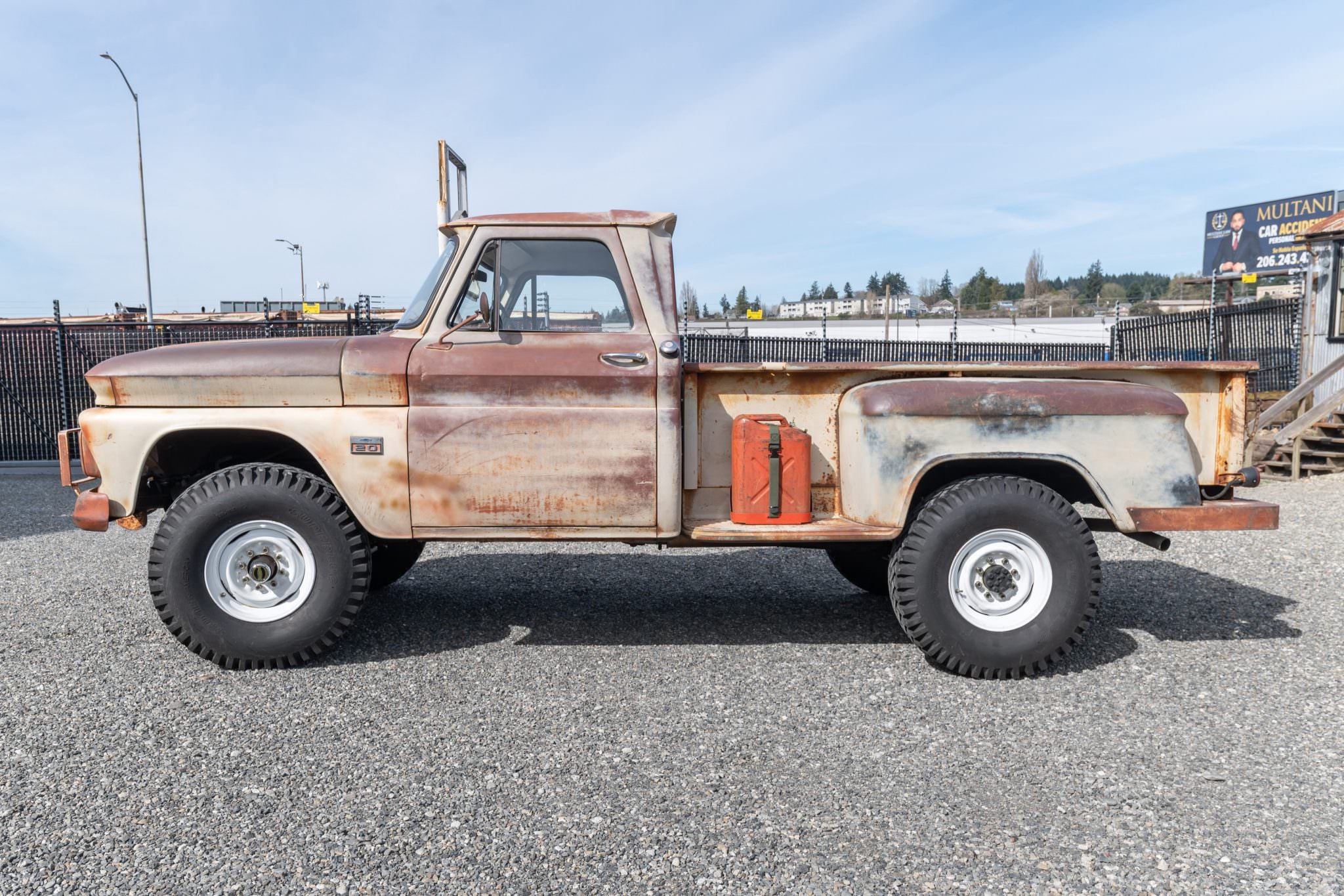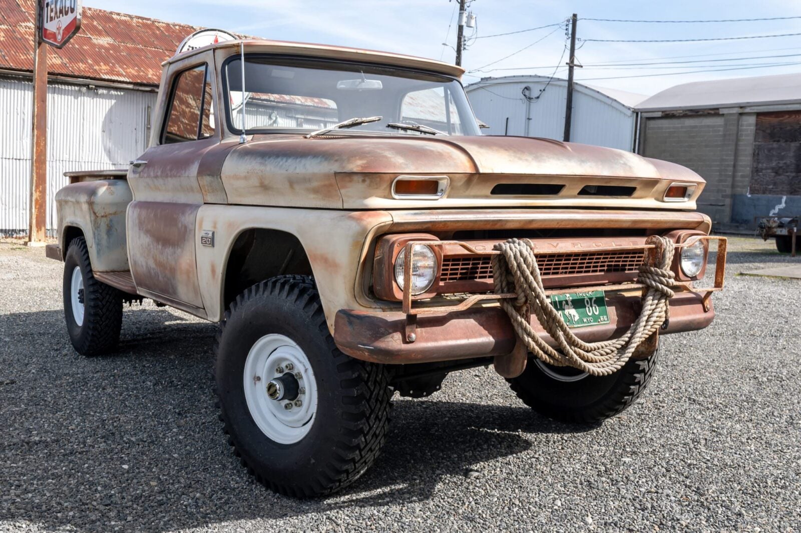 - This 1966 Chevrolet K20 Stepside 4×4 was refurbished under prior ownership and acquired by the current seller in 2026. The cab and bed were separated from the frame for body repairs during the build, and the truck now has distressed, patina-style paintwork. It’s being offered from Tacoma, Washington, with a Washington title in the seller’s name.