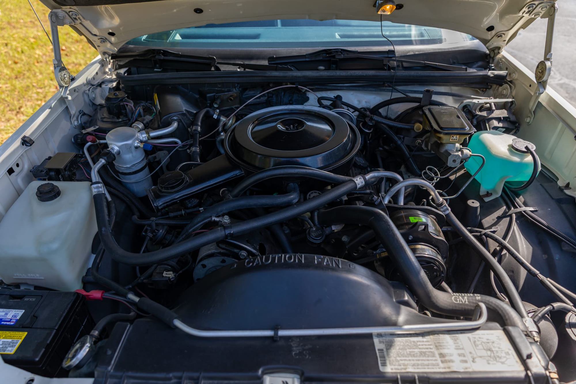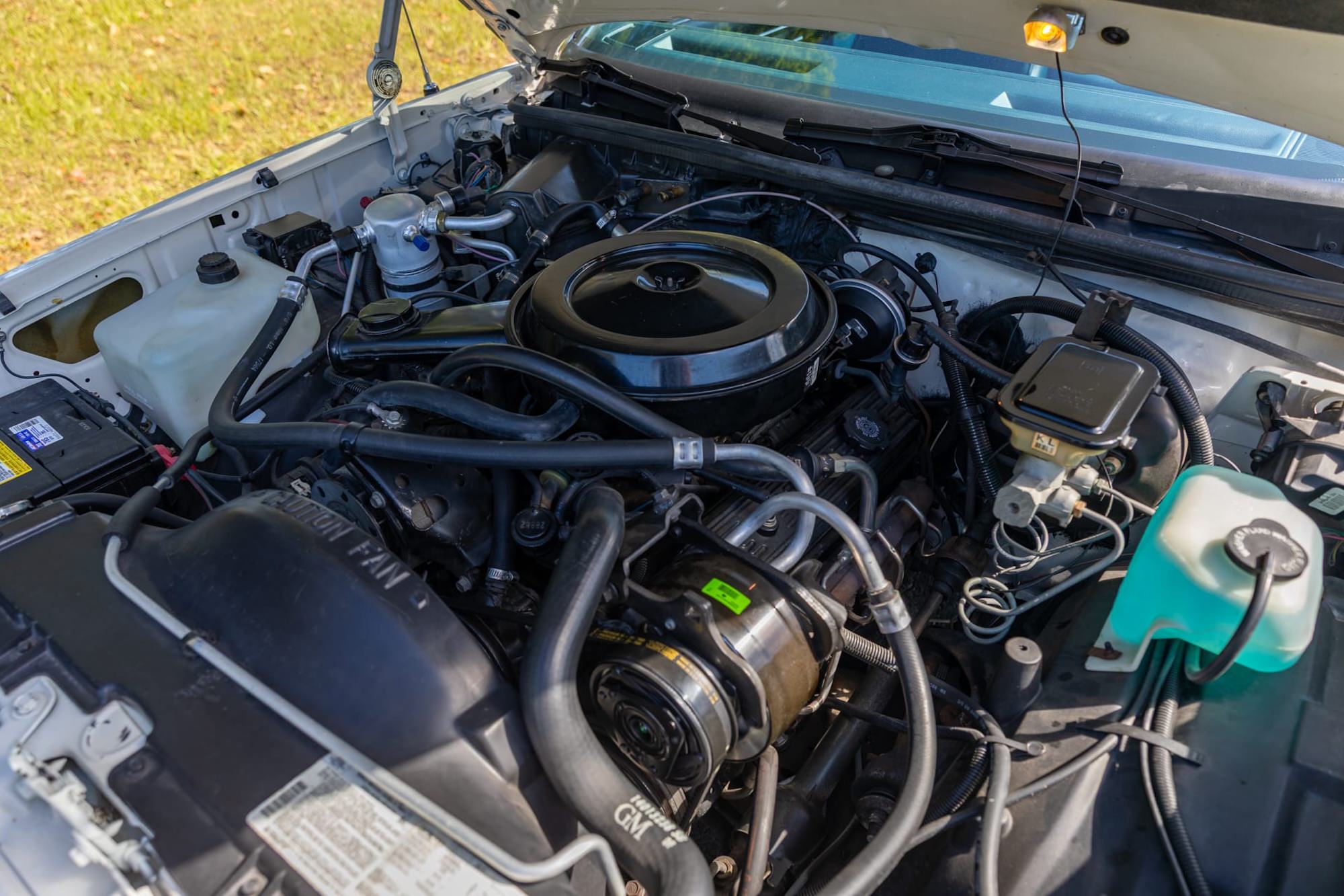 - The example shown here is a remarkably well preserved 1987 model with only 6,536 miles on the clock. It’s powered by a 305 cubic inch V8 with an automatic transmission, it has power accessories, air conditioning, and a blue interior. Finished in white with black graphics and BF Goodrich Radial T/A tires, it’s set to cross the Mecum auction block in January.