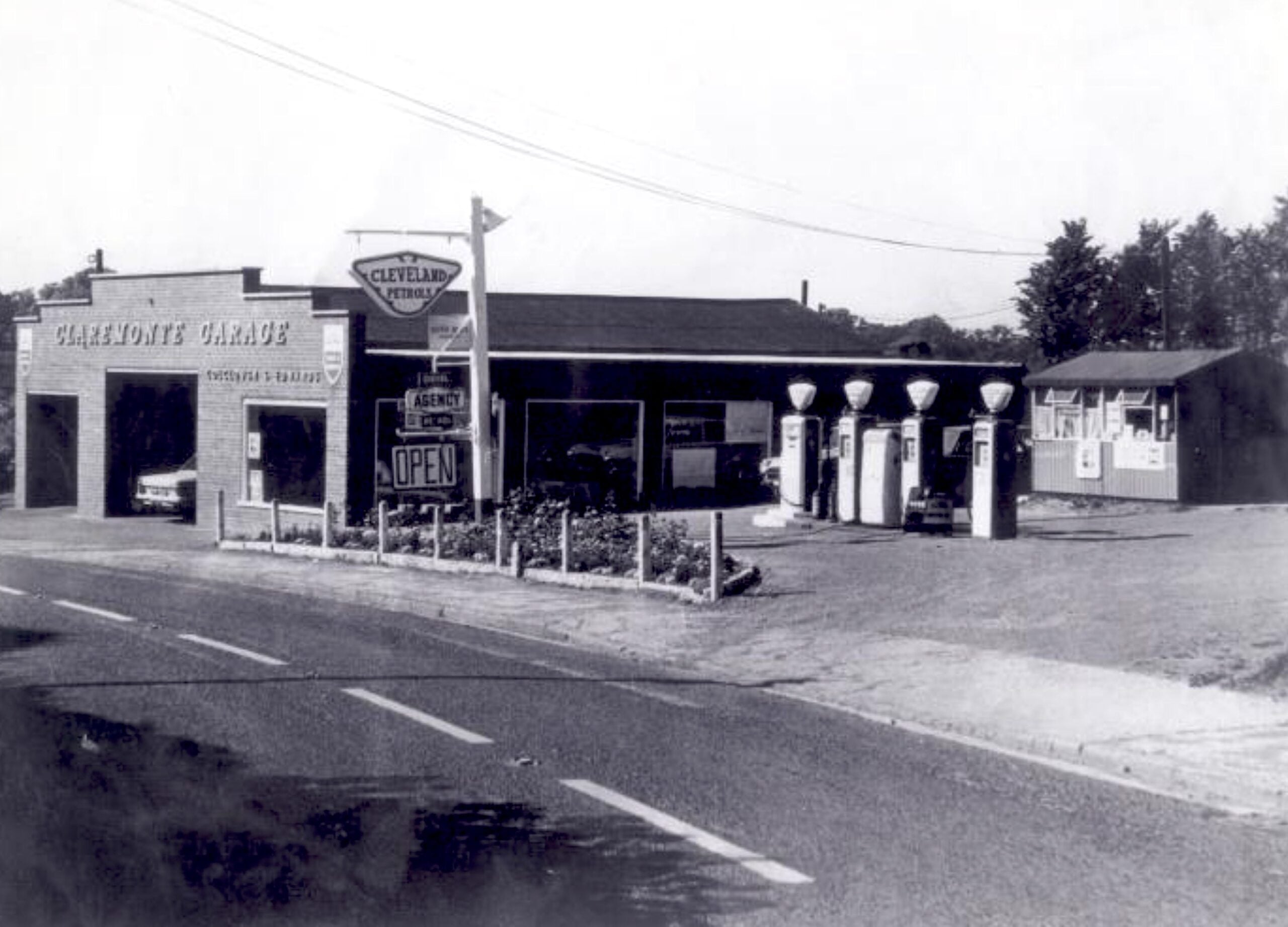 This is the old Claremonte Garage on Stafford Road in Eccleshall, England. You can see the Cleveland branding on the overhanging sign. Image courtesy of Esso.