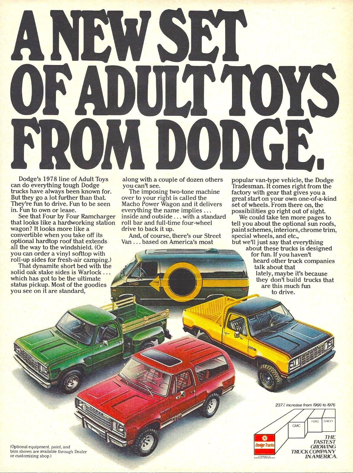 Lighter-duty W-series four-wheel drive pickups were introduced, offering more conventional proportions and better on-road manners while keeping good off-road capability. These trucks appealed to a much wider audience, and perhaps predictably, they gradually surpassed the original Power Wagon in sales volume.