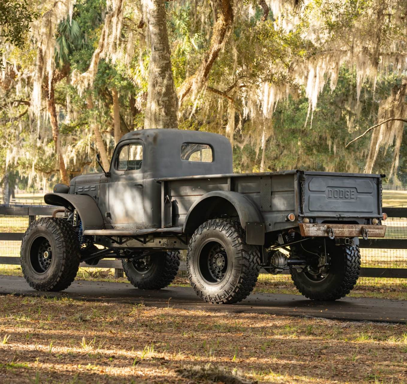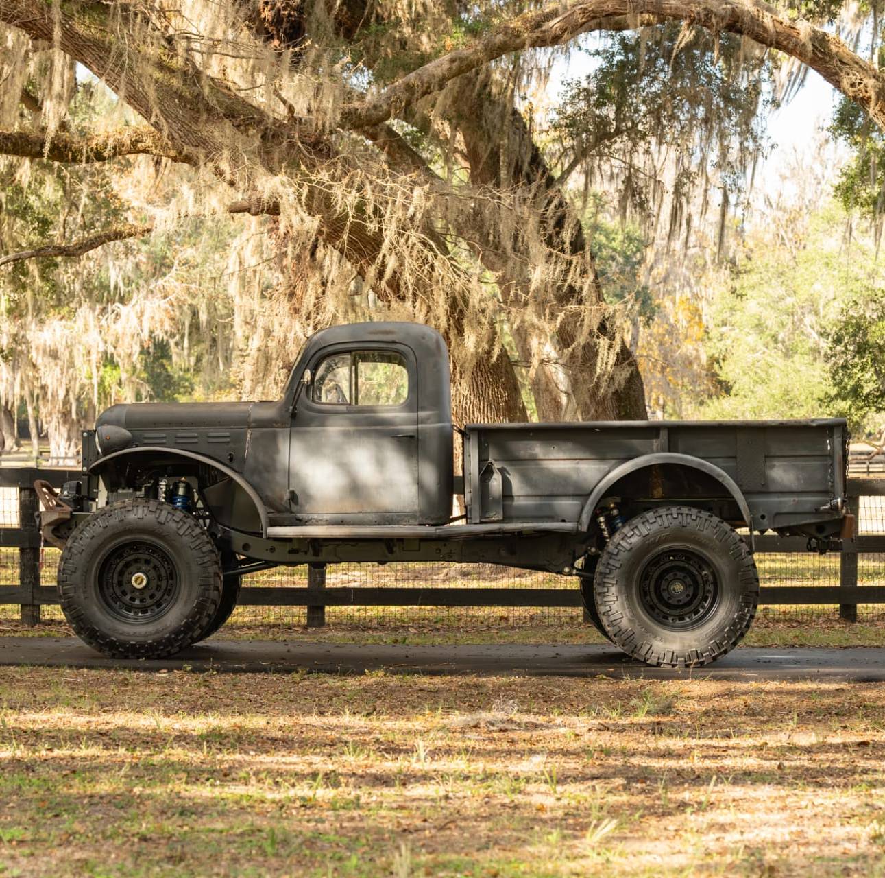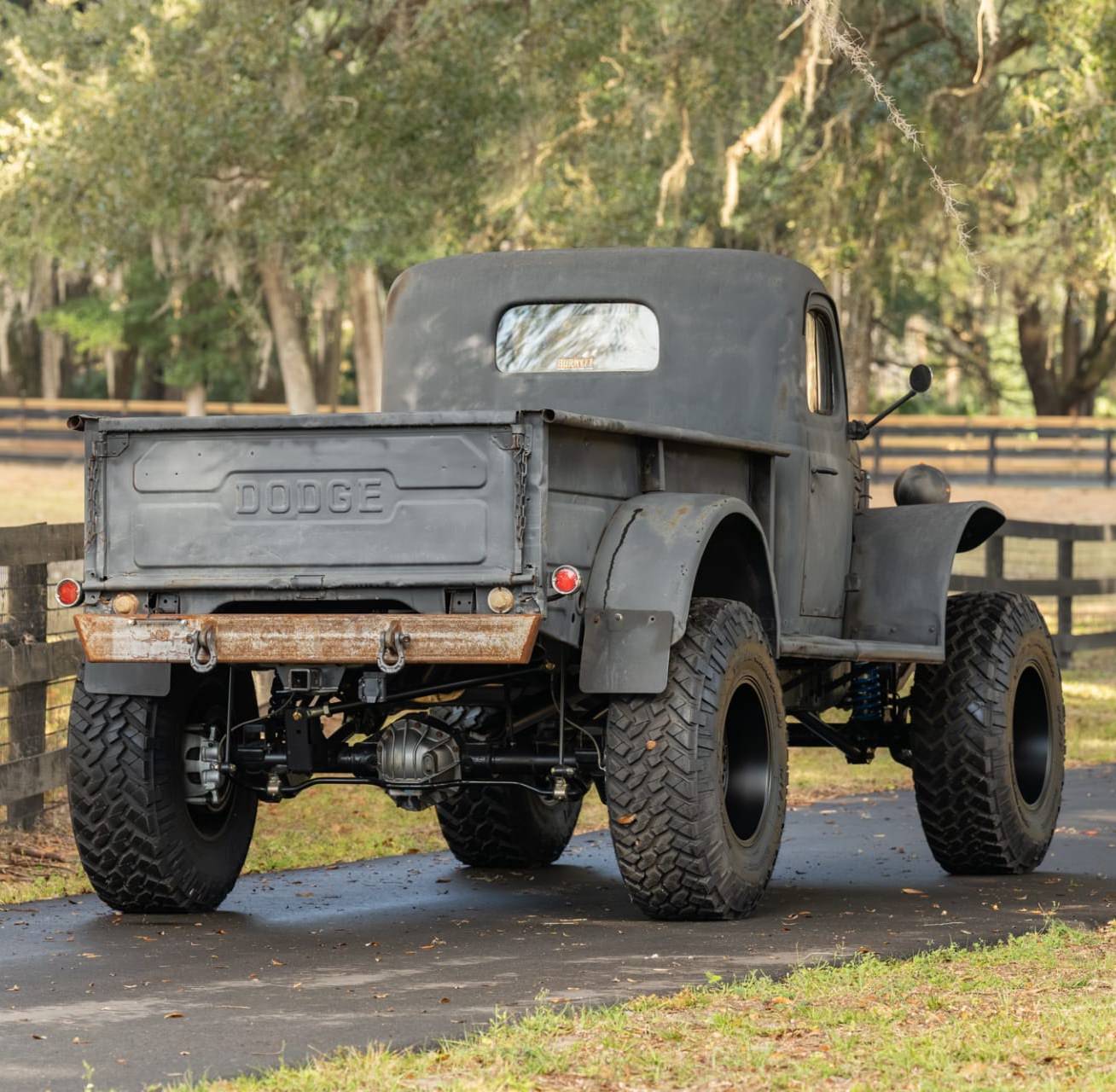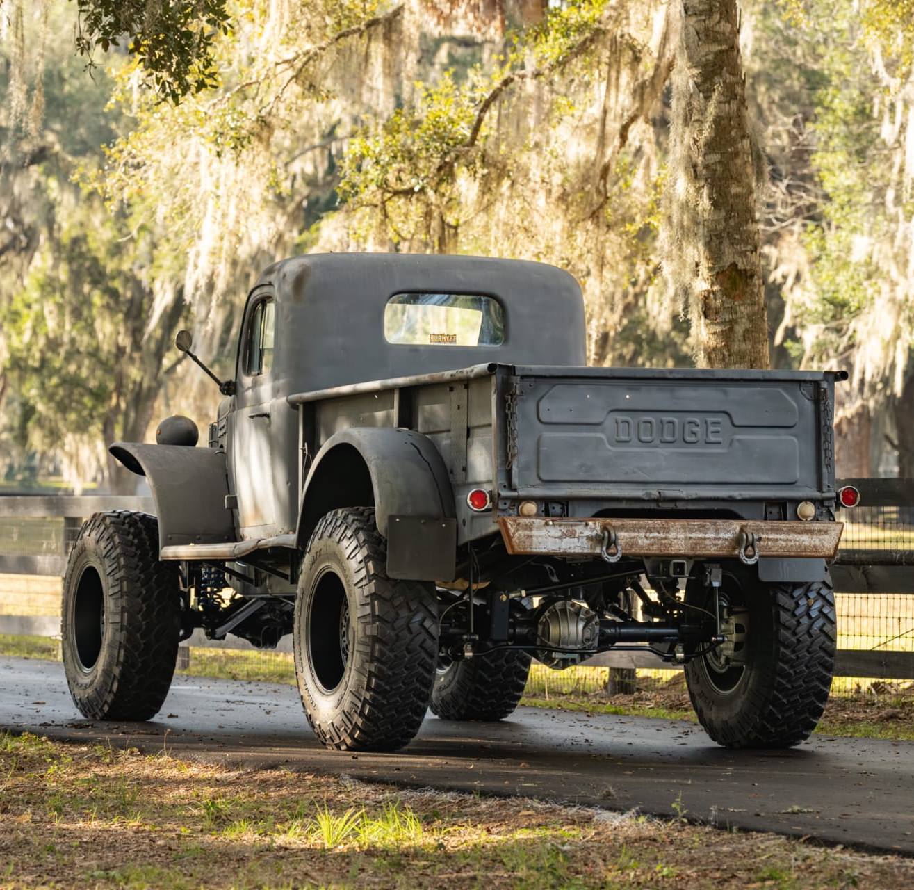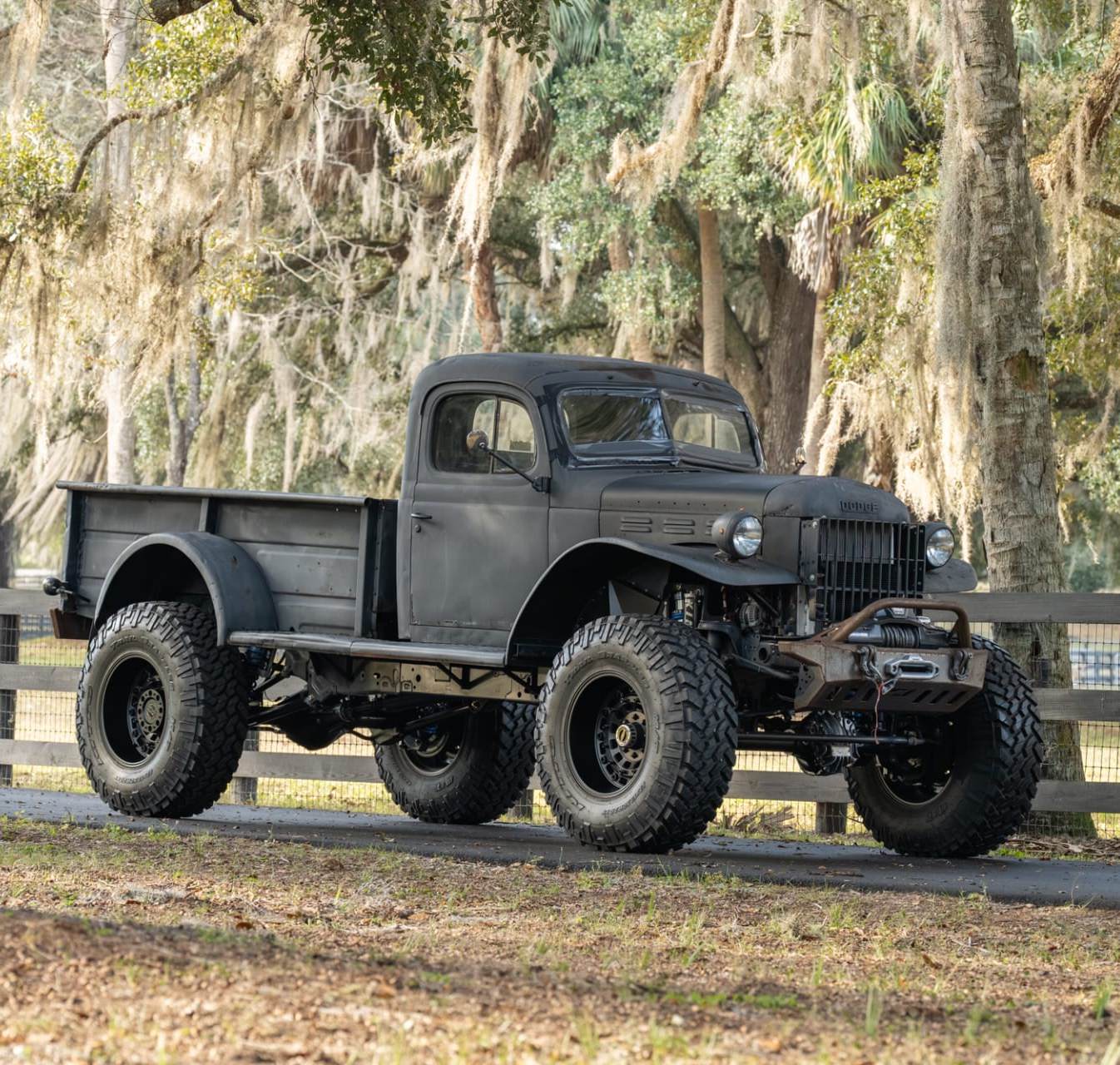 The original Power Wagon body was fitted to a modern Jeep Gladiator Rubicon chassis, a high-performance four-wheel drive platform with live axles on coil springs front and back, four-wheel disc brakes, and a slew of other modern features no first-gen Power Wagon ever had.