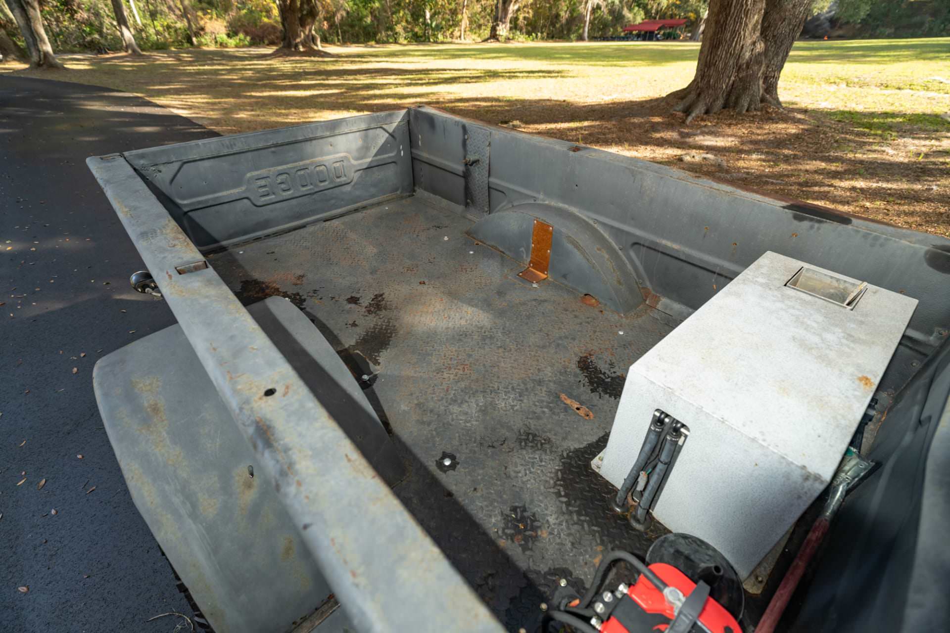 The narrow, high-sided bed was designed to clear the rear wheels and preserve ground clearance rather than maximize cargo space. Buyers could specify factory equipment like a Braden front-mounted winch, dual rear wheels, and specialized beds depending on the job at hand. Comfort and appearance ranked low on the priority list – capability and reliability always came first.