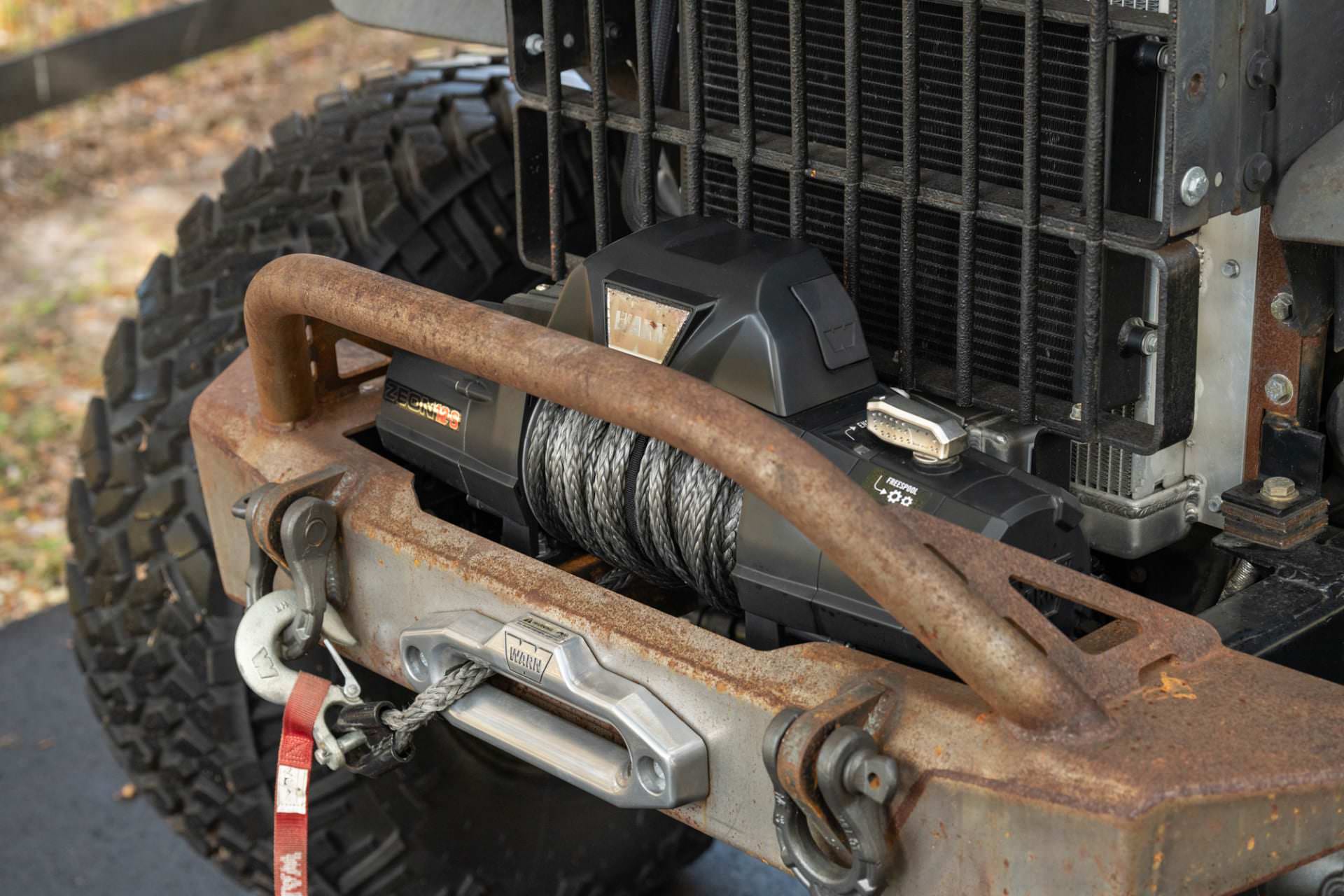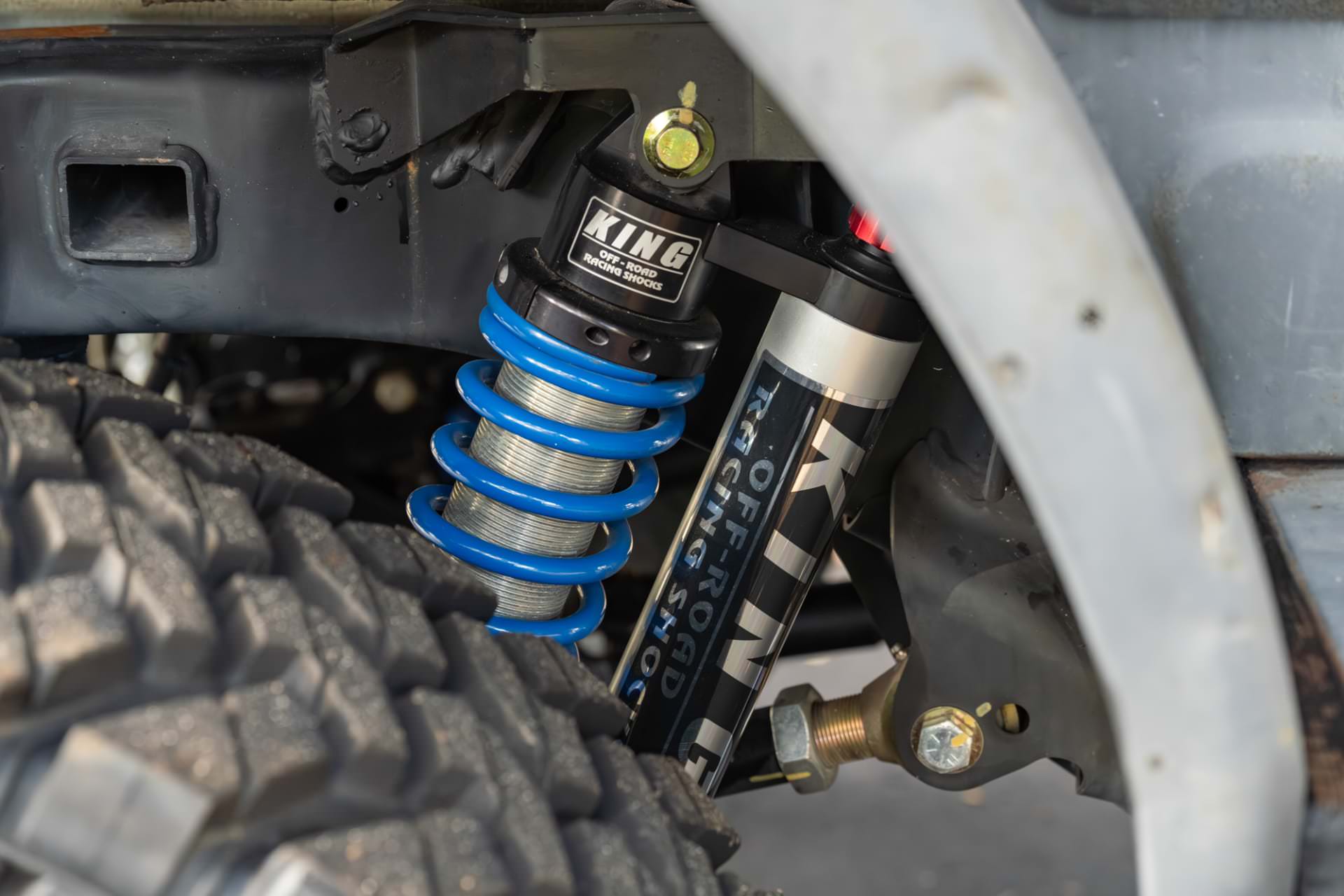 It now rides on EVO Manufacturing suspension upgrades with King remote reservoir shocks and it rolls on Nitto Trail Grappler tires fitted to black wheels. You’ll find a Warn winch up front on the custom steel bumper, and it has a matching rear steel bumper with a trailer hitch.