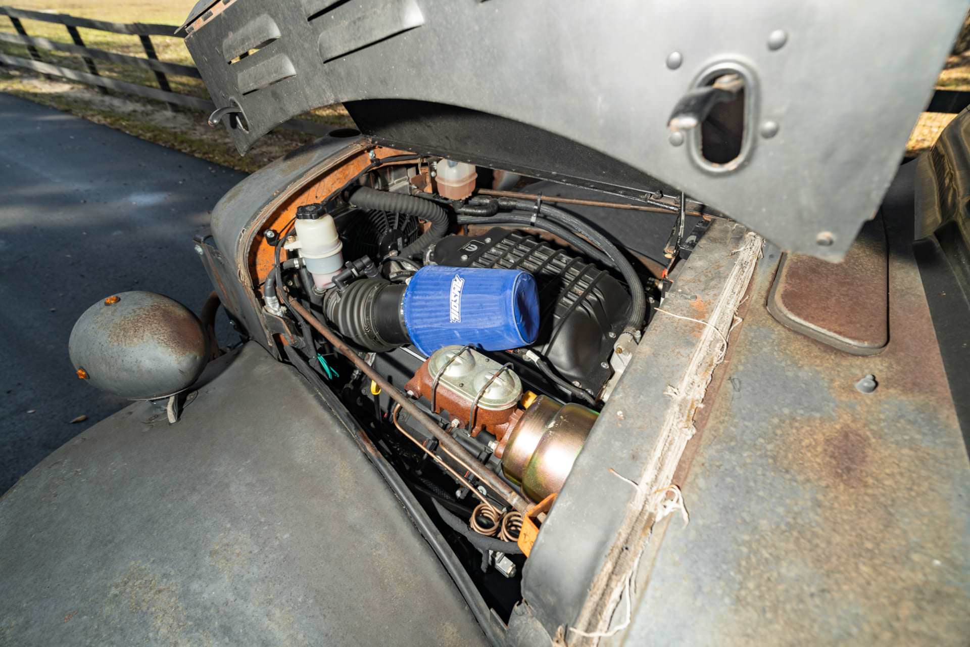 Thanks to its new underpinnings, this Power Wagon truly lives up to its name, and unlike its unmodified siblings it’s highway capable and able to overtake almost anything you’ll find on public streets. The body has been kept in deliberately patinated condition, turning it into a rat rod of sorts.