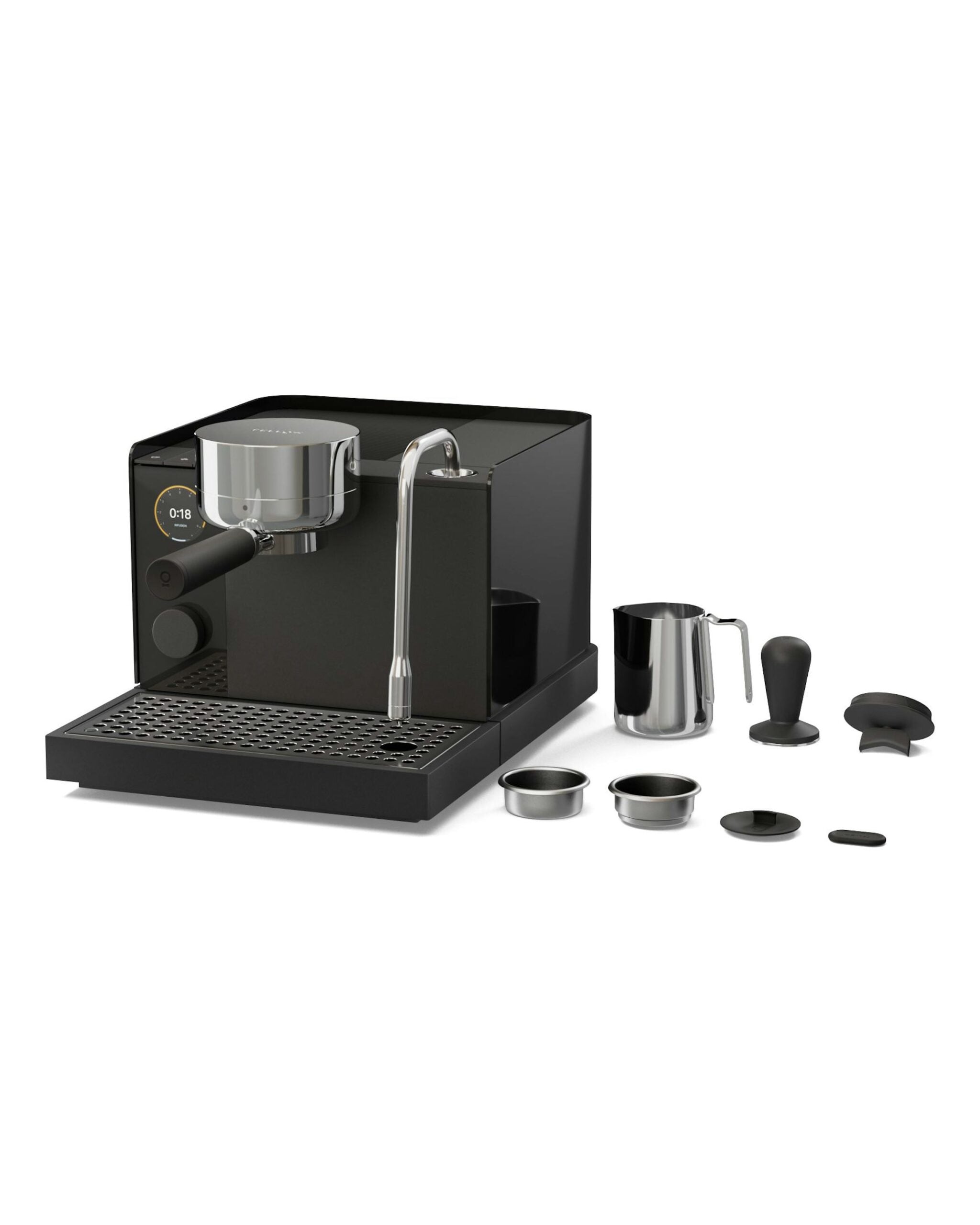 The Series 1 ships with a bottomless portafilter, tamper, 10oz steaming pitcher, single-wall and pressurized double-shot baskets, a shot splitter, backflush disc, descaler, and a $25 Fellow Drops coffee credit.