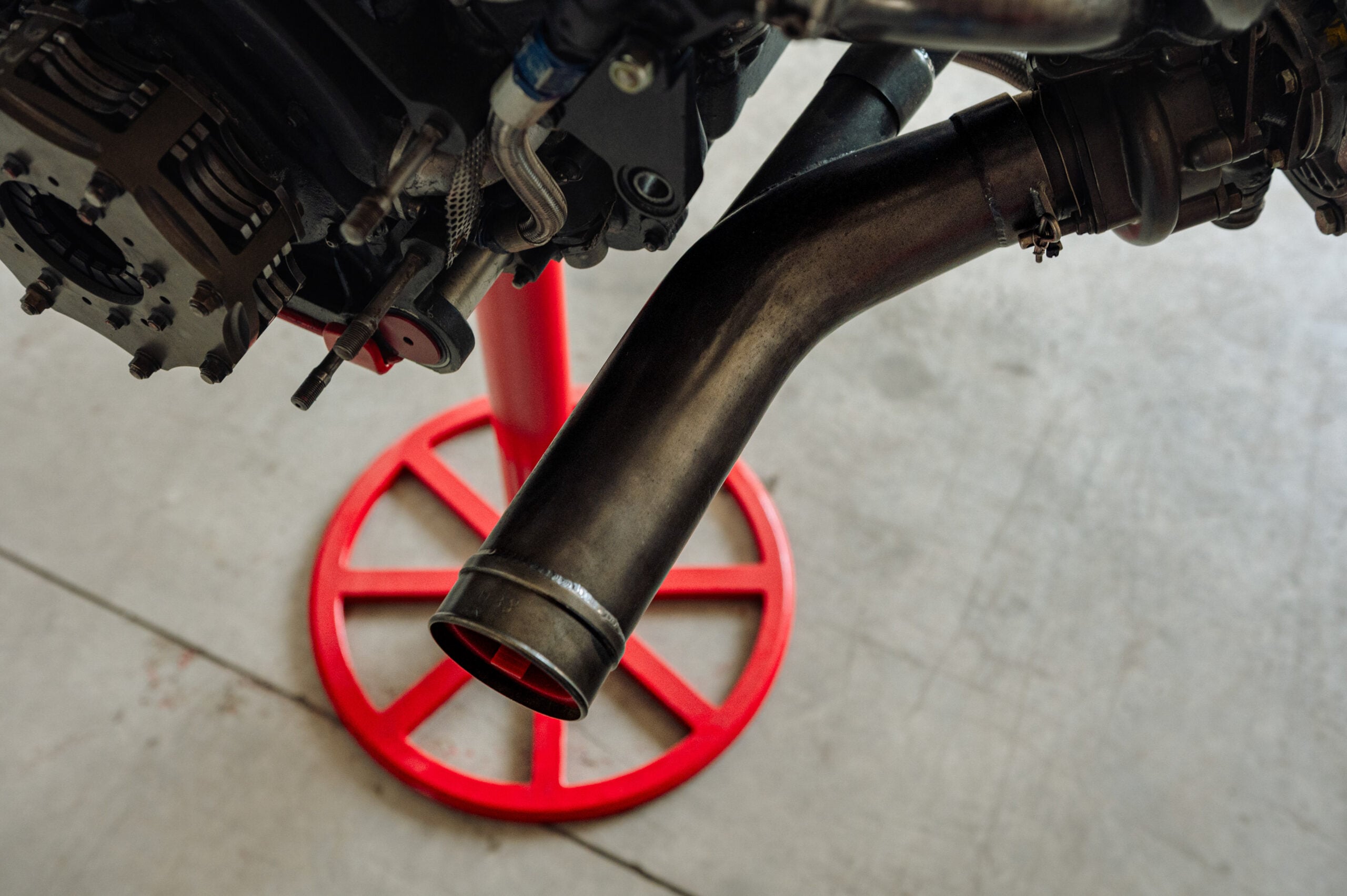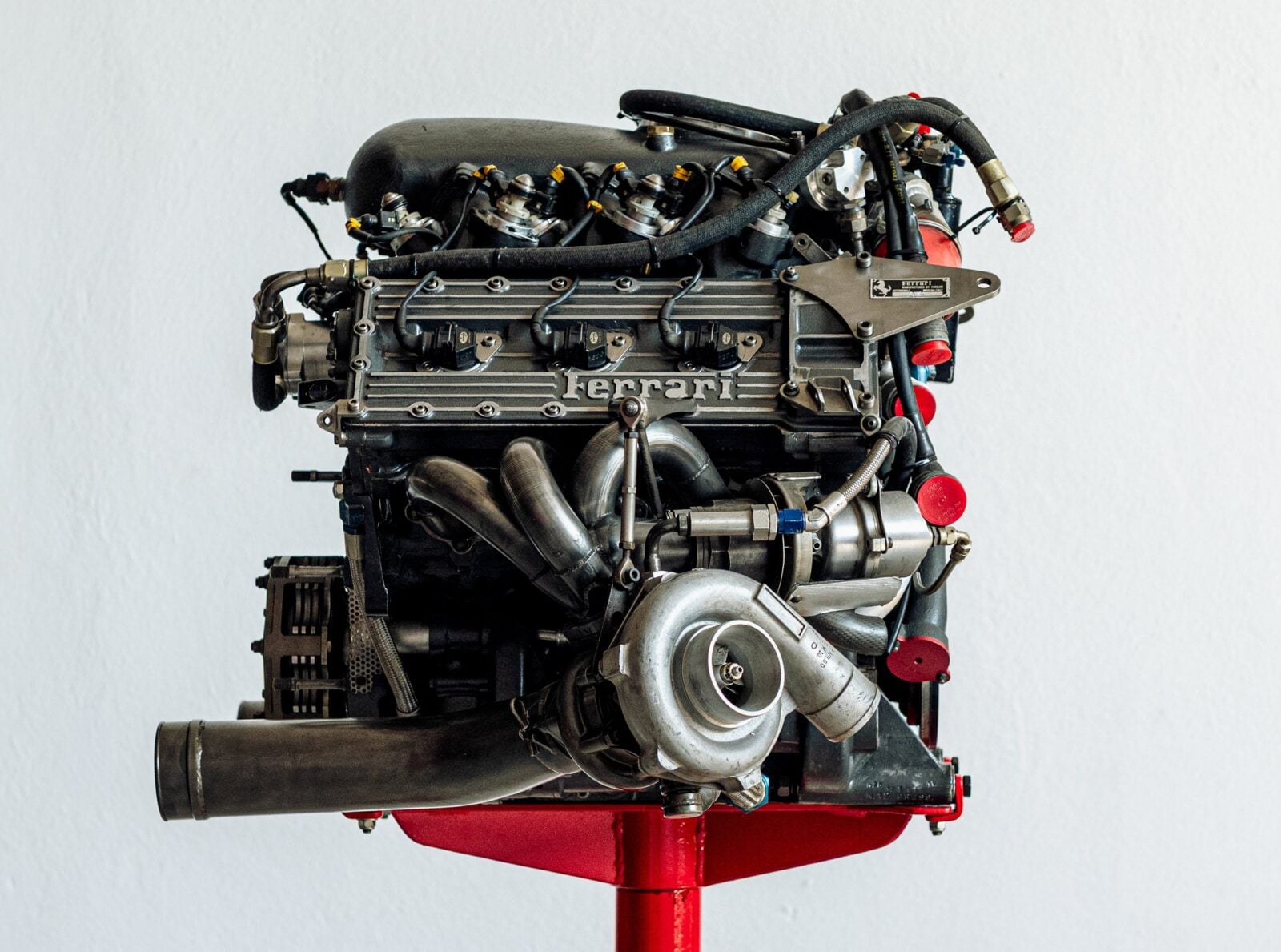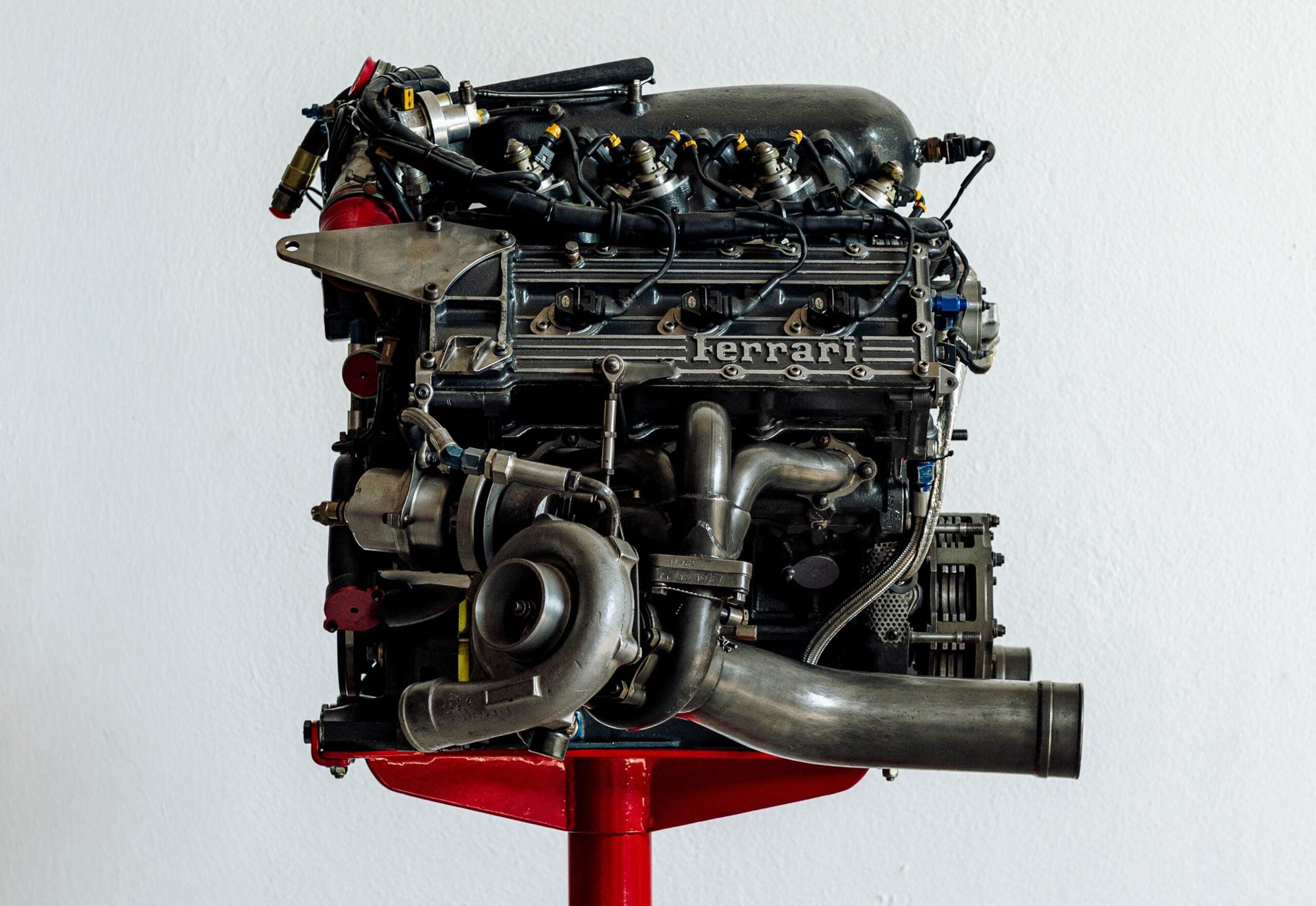 The engine you see here is an original that was fitted in the Ferrari F1-87 car for the 1987 Formula 1 World Championship season. It has now been prepared for display duties, and comes on a red steel stand with a circular base.