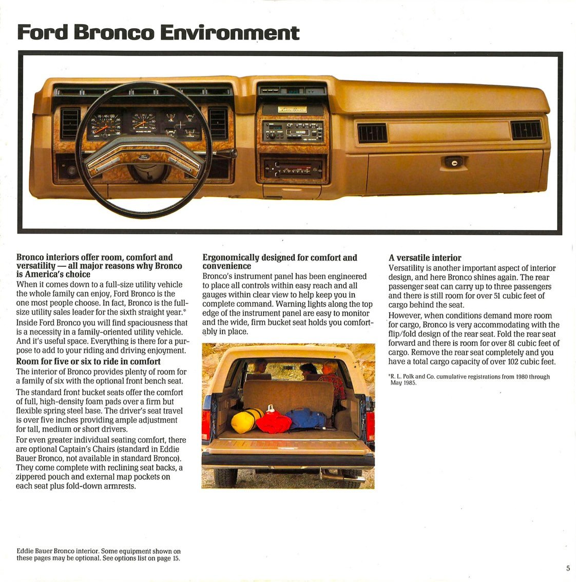 Against these, the Bronco remained a best-seller, taking full advantage of Ford’s huge national dealer network, with period marketing literature making a point to extol the virtues of the Bronco’s independent front suspension, opulent interior options like twin front captain’s chairs, a center lockbox with cupholders, and more common options like cruise control, air conditioning, and an AM/FM/cassette player.