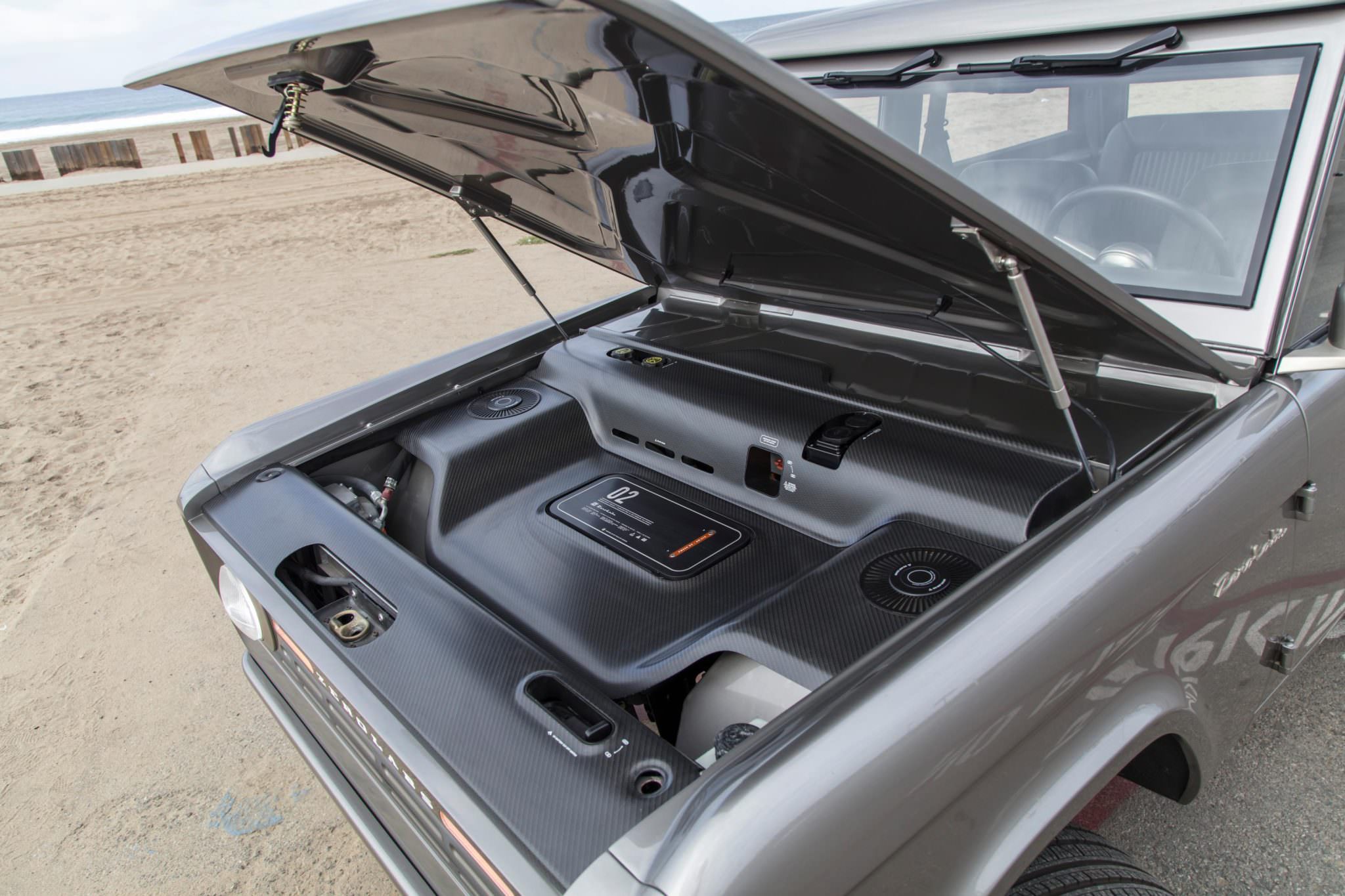 - This 1974 Ford Bronco was completely rebuilt by Zero Labs and fitted with a 434 bhp BorgWarner electric motor delivering 277 lb ft of torque. It still has its 5-speed manual transmission and dual-range transfer case, keeping the mechanical involvement of the original vehicle while offering the smooth torque delivery of an EV.