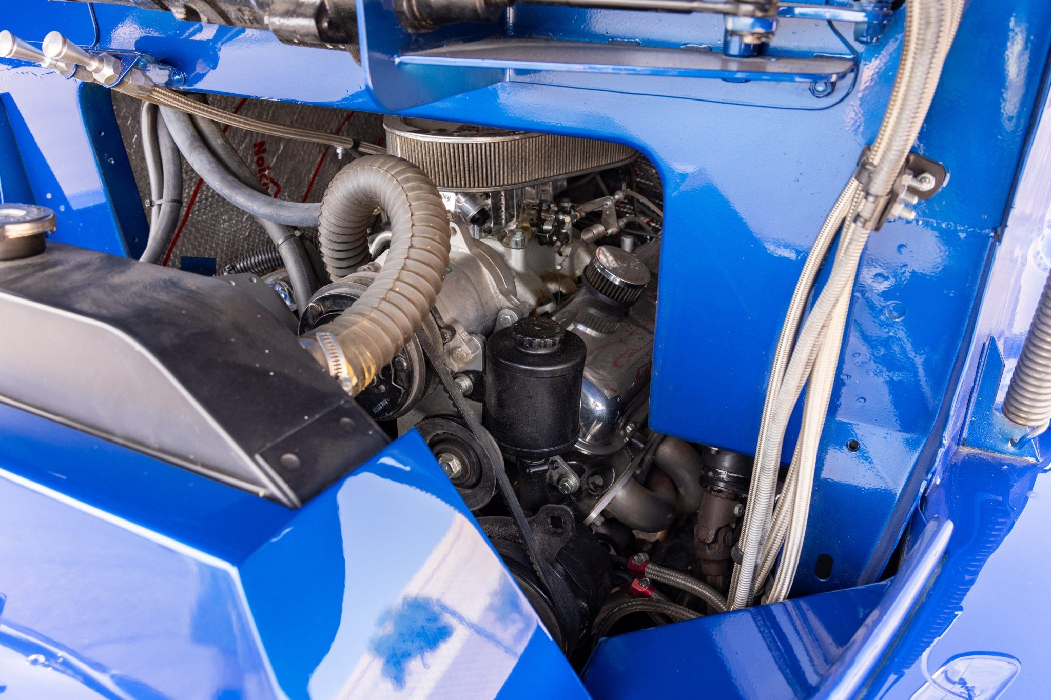 This engine is paired with a TH400 3-speed automatic transmission and a 4.10:1 rear axle. Braking is handled by a hydroboost-assisted system with front discs and rear drums. The body received a ceramic coating to protect it when out on the road, and it rolls on 16-inch American Racing wheels shod with Cooper tires.