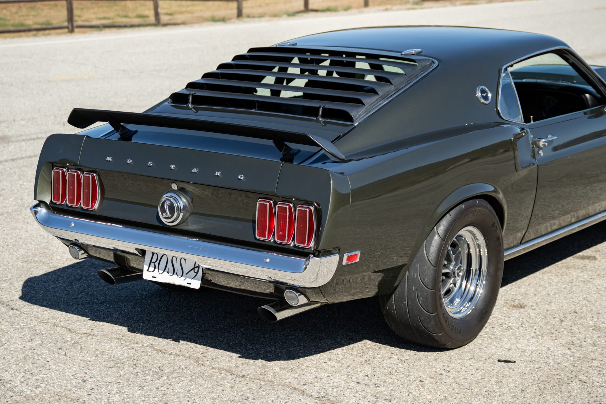 - Externally, it retains its period Black Jade finish, Boss 429 badging, functional hood scoop, and rear window louvers, complemented by 15-inch Magnum 500-style wheels and Mickey Thompson drag radials. The suspension was upgraded with Calvert Racing springs, while stopping power is provided by front discs and rear drums – keeping the car’s vintage character but meaning the owner will need to be on the ball.