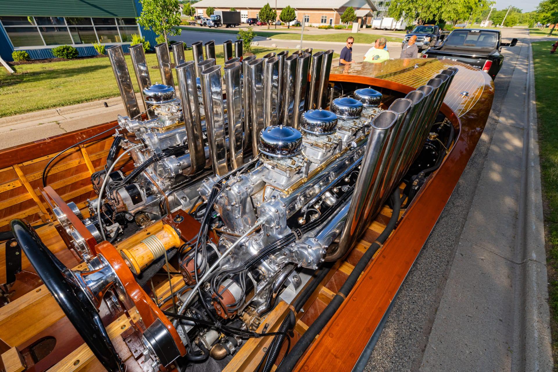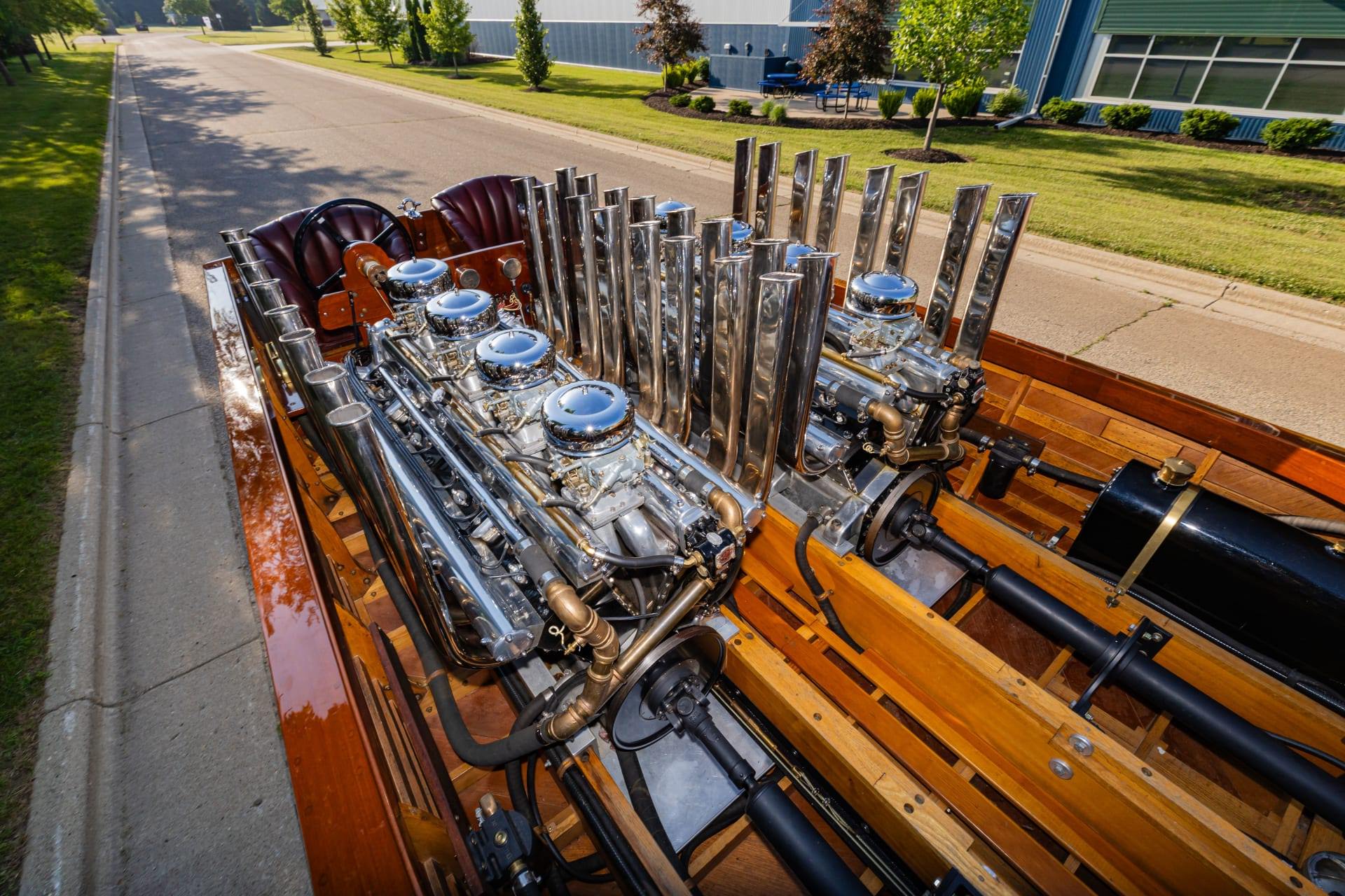Her power initially came from a pair of Packard-built marine V12 engines developed from the 1M-2500 lineage. Contemporary reporting places their output at roughly 1,000 bhp each, placing Miss America VIII comfortably into the upper tier of late-1920s and early-1930s racing machines.