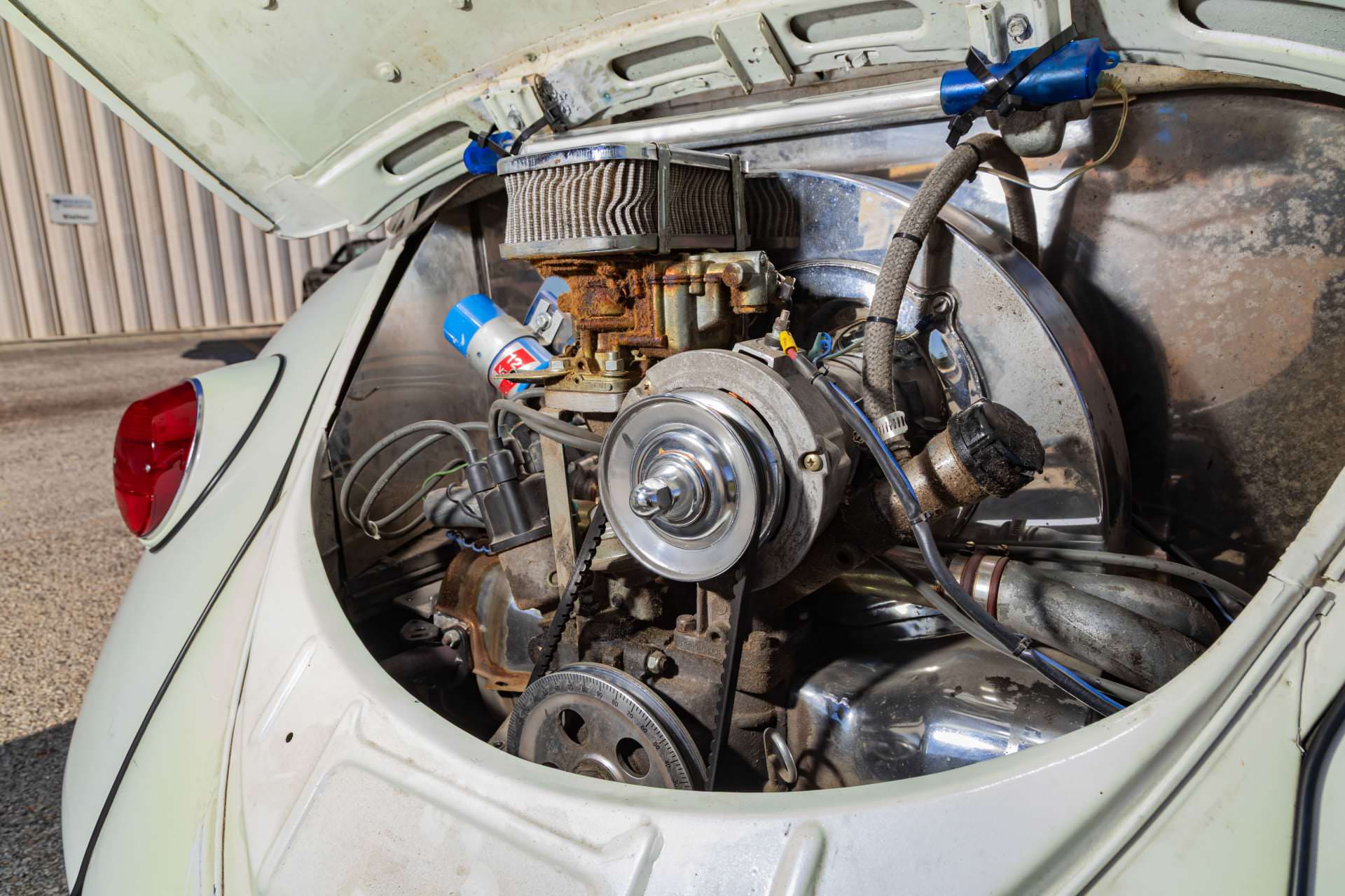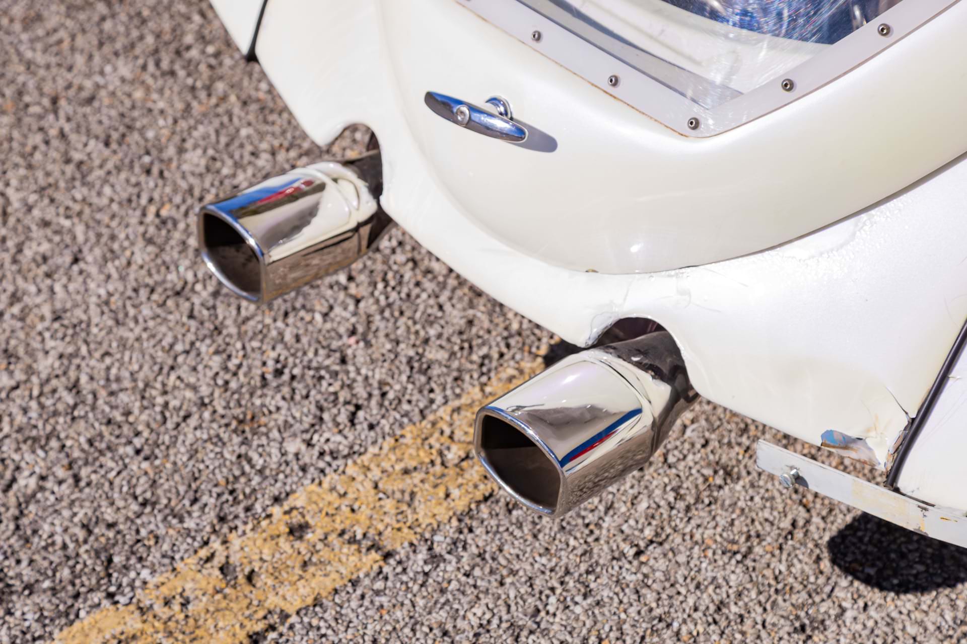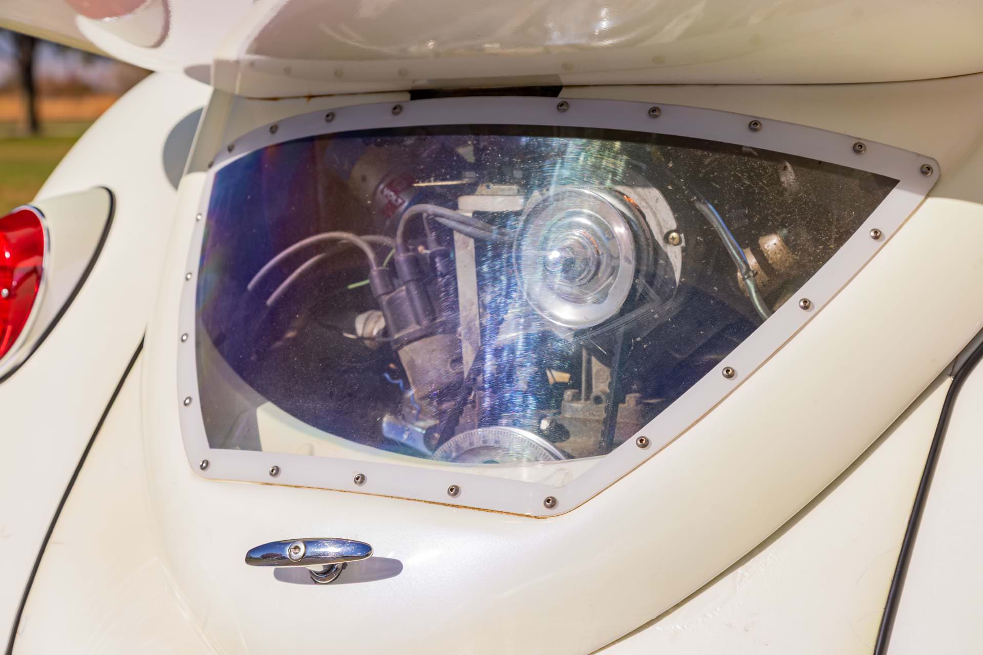 Each of the street racer-spec Herbies were fitted with a fiberglass deck lid with whale-tail spoiler and see-through engine cover, fiberglass fenders and running boards, faux air intakes, lowered suspension, and chrome wheels.