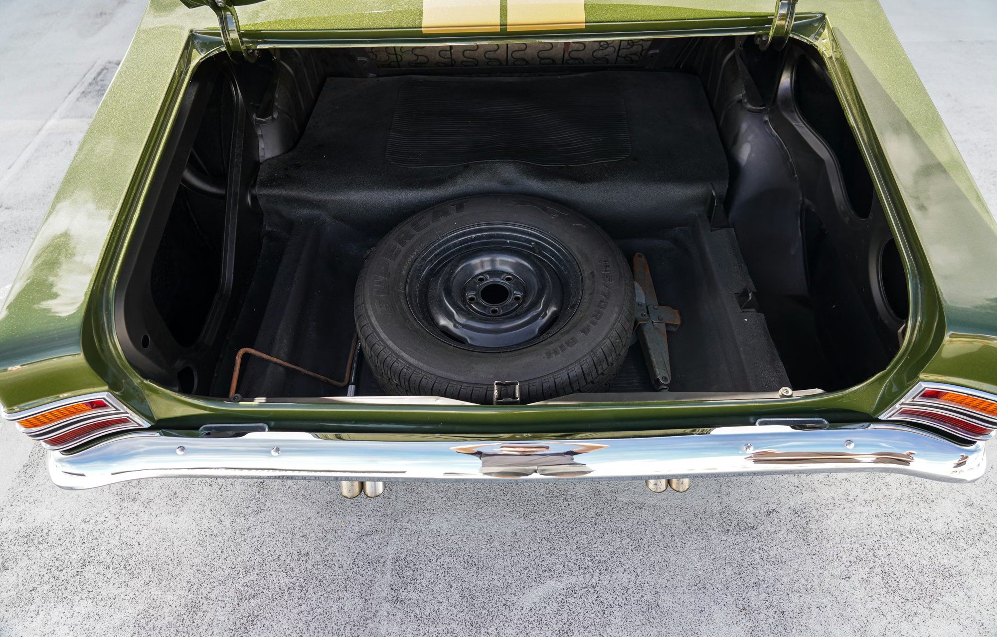 This car was given some restoration work previously, including a respray in green and gold (Australia’s national colors), it has an antique gold leather and houndstooth cloth interior. It rides on 14 inch wheels fitted with Bridgestone tires.