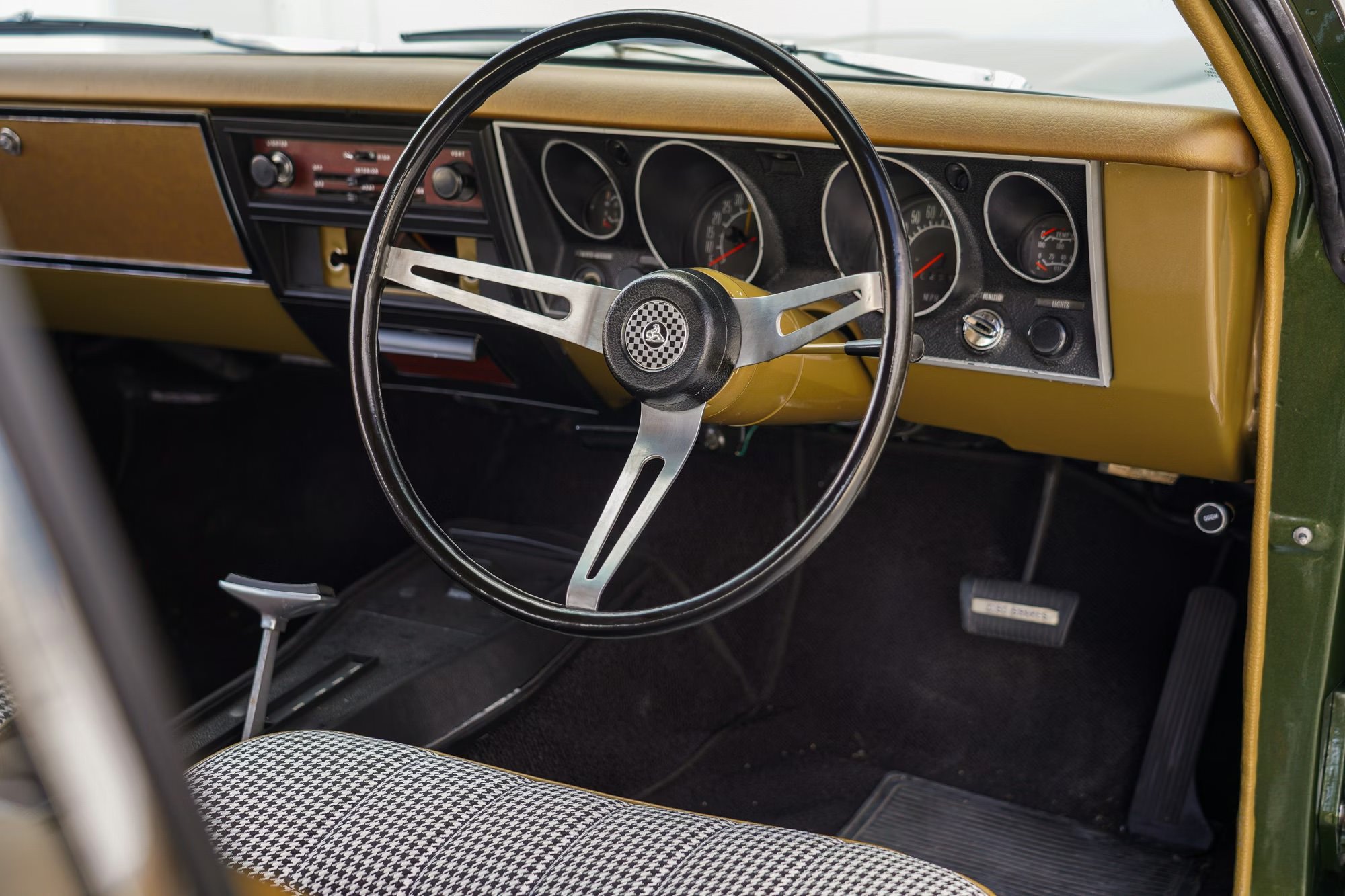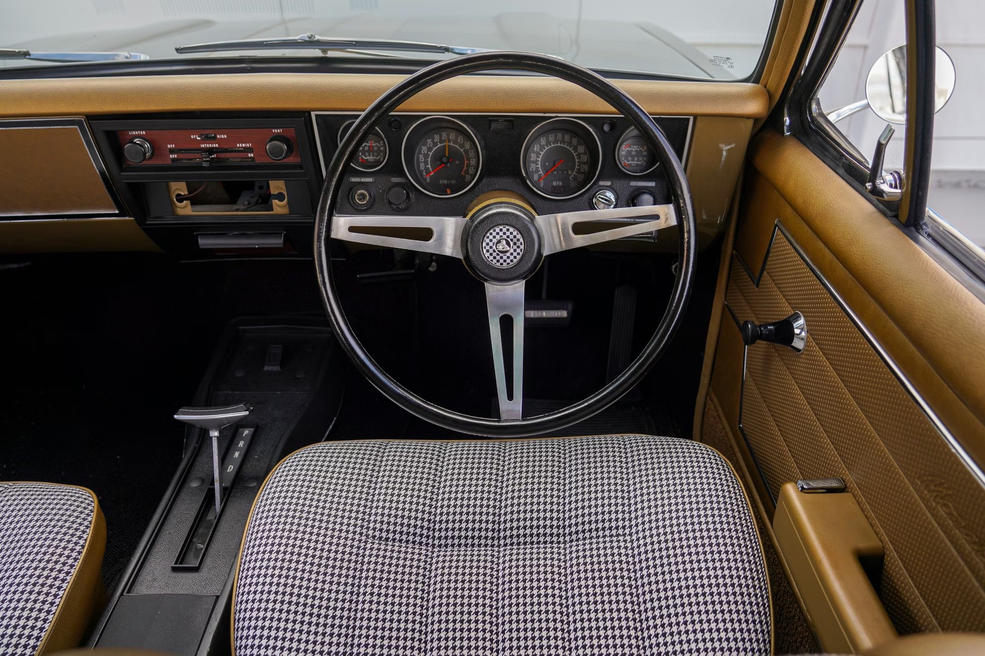 This is an original 1969 Holden HT Monaro GTS powered by the Holden 308 V8, with power sent back through a two-speed automatic transmission to the rear wheels. It’s covered approximately 104,000 miles from new, and it has classic wind-down windows with opening front quarter lights, a lockable glovebox, and a footwell-mounted fire extinguisher.