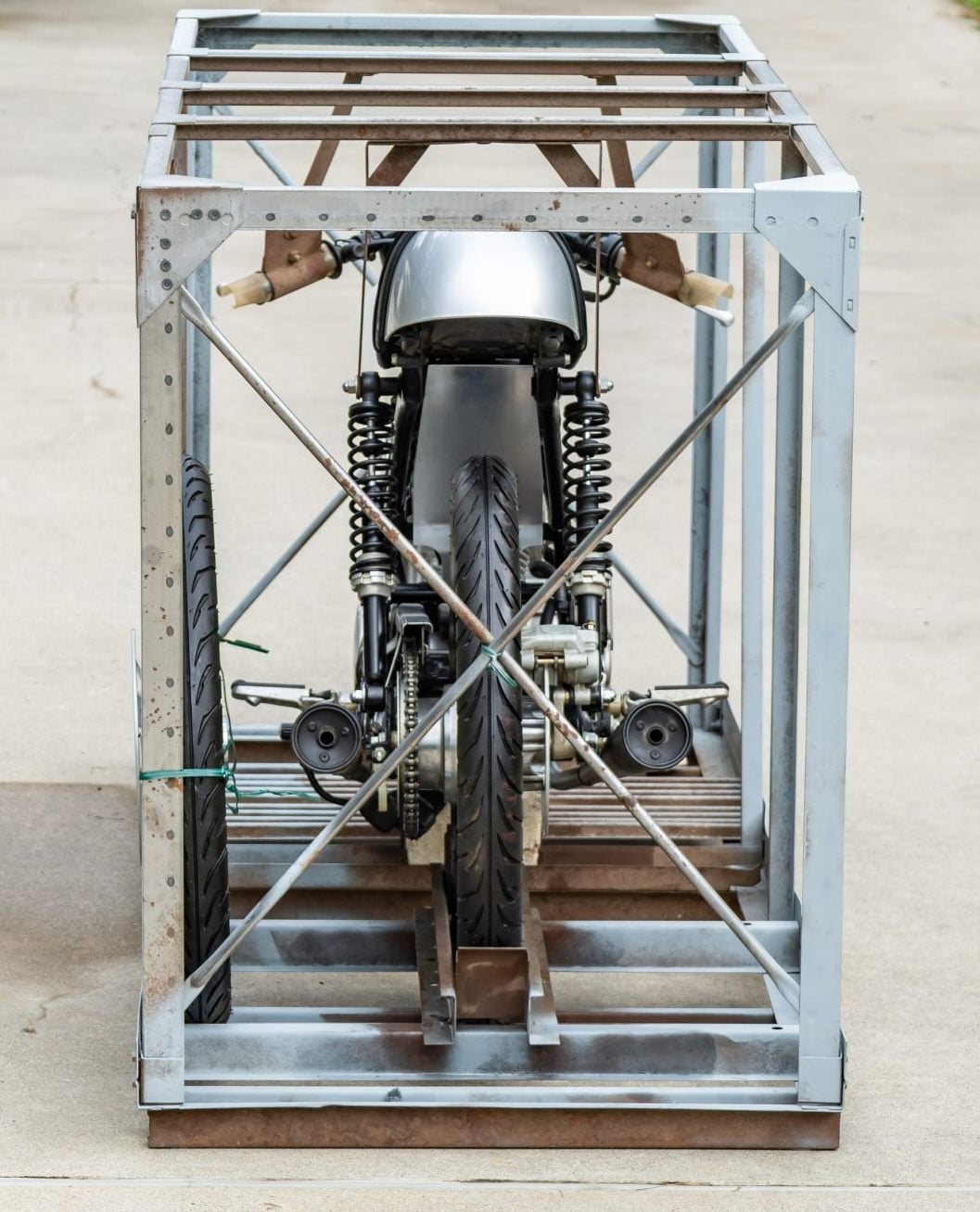 This is a 2004 Honda Dream CB50R that has remained in its factory crate since new, and impressively, it’s also remained in the possession of its original owner since new.