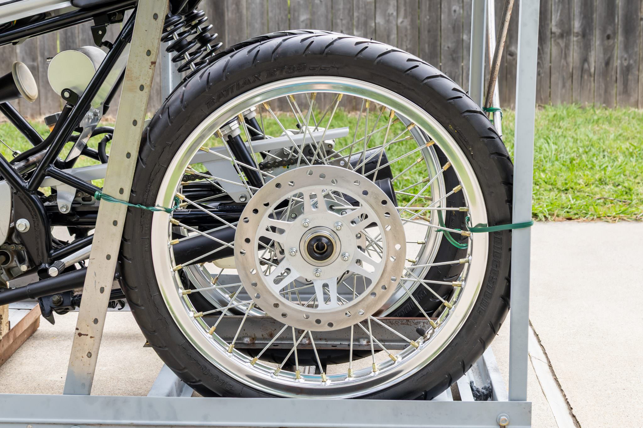 Power is sent to the rear wheel via a 5-speed gearbox and chain final drive, and the bike tips the scales at just 81 kilograms (180 lbs) dry.