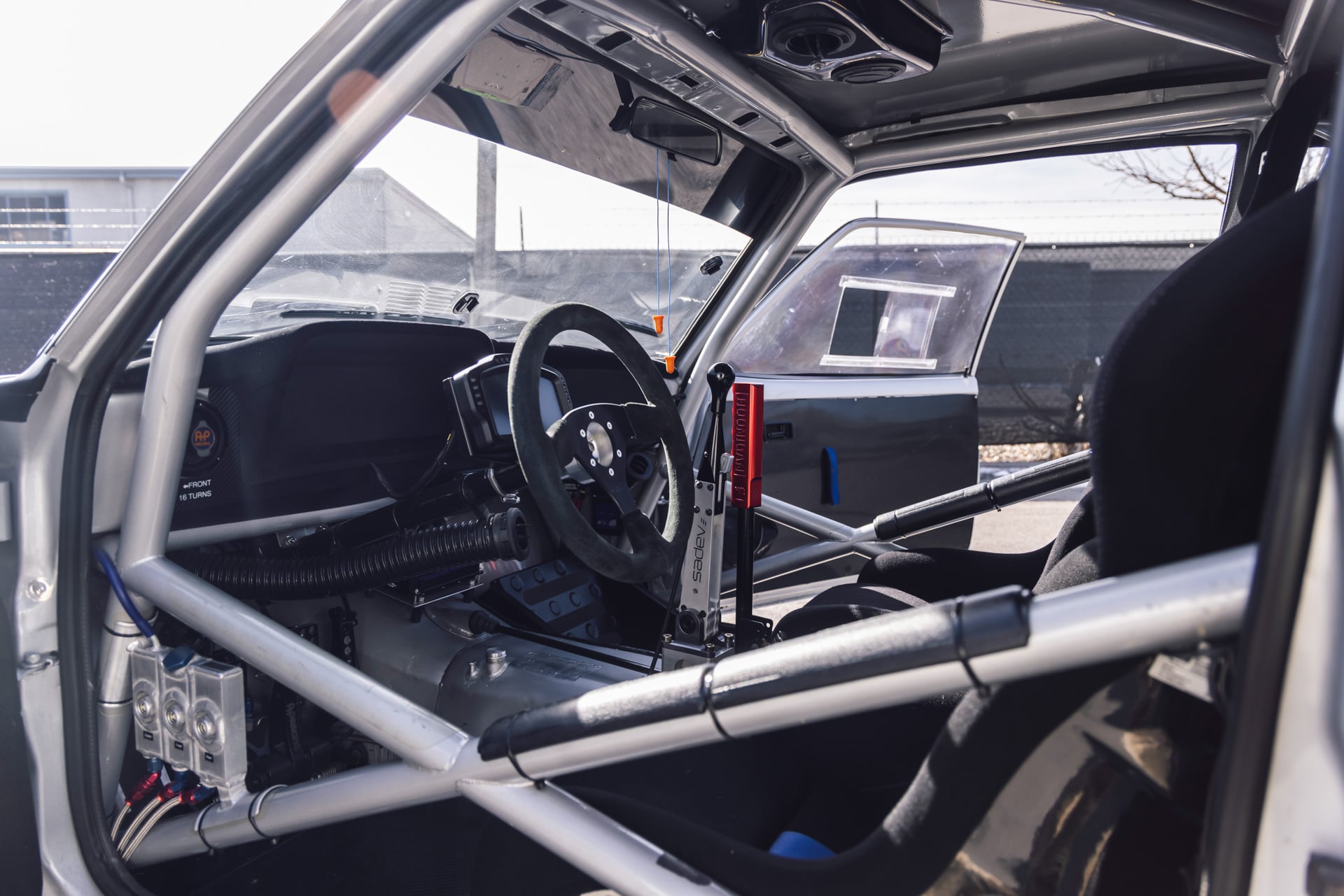 - The chassis and cabin were also completely reworked. It has WRC-style independent rear suspension, Reiger three-way coilovers, AP Racing brakes, Fifteen52 wheels, a Rocket Bunny widebody, and a stripped race interior with cage, Recaro seats, hydraulic handbrake, fire system, and data logging.