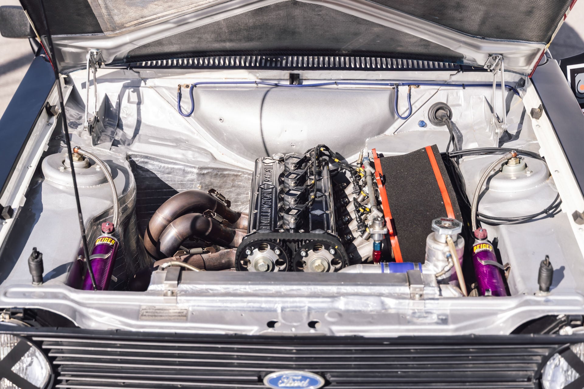 - Mechanically, this particularly car is far removed from any standard Escort. It uses a 2.5 liter Millington Diamond twin-cam four-cylinder with EFI, individual throttle bodies, a Cosworth Pectel ECU, and a 9,000 rpm redline. Output is listed at 333 bhp and 246 lb ft, sent through a Sadev six-speed sequential gearbox.