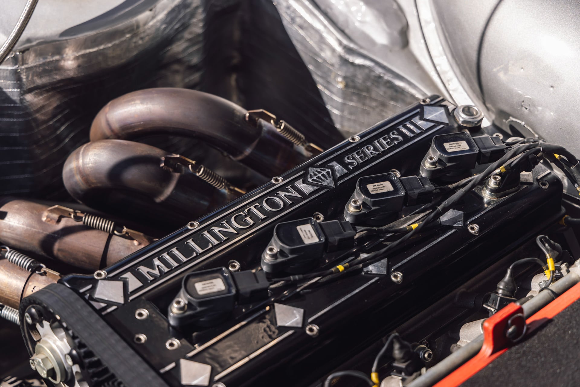 Power comes from a 2.5 liter Millington Diamond DOHC 16 valve inline-four with electronic fuel injection managed by a Cosworth Pectel SQ6 ECU, individual throttle bodies, coil-on-plug ignition, and a stainless-steel header and exhaust system.