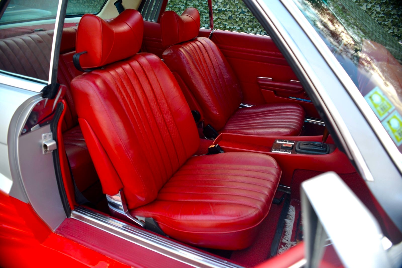- The cabin has bright red leather, a KS-branded Italvolanti steering wheel, and Persian-style patterned floor mats that may be later additions. The engine bay looks almost stock aside from some cosmetic chrome touches. The original 4.5 liter M117 V8 made 222 bhp and 278 lb ft in standard form, using a single-cam per bank, two-valve-per-cylinder layout.