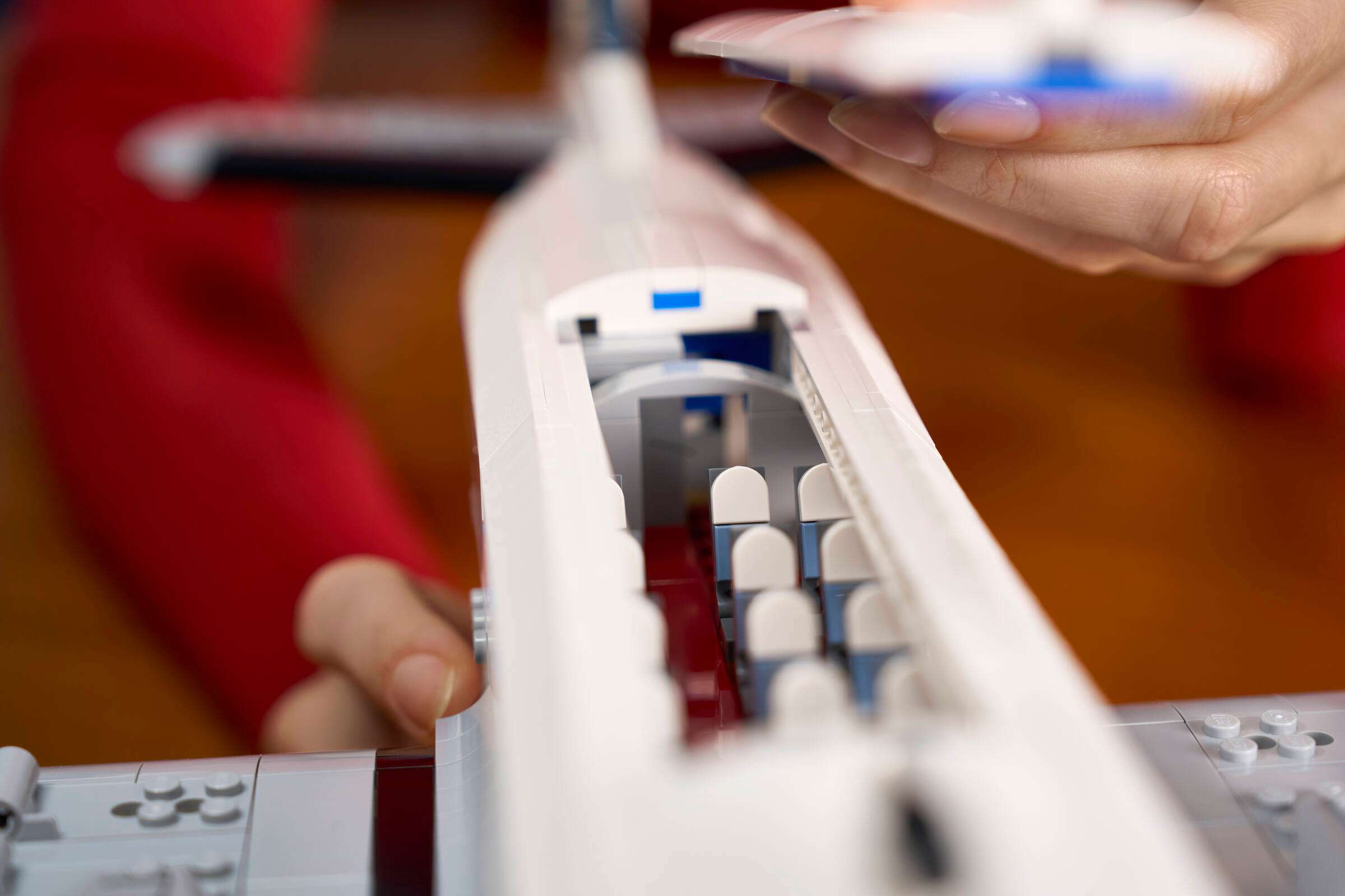 The build includes a number of nice functional details – it has retractable landing gear operated by a dial mechanism, and removable fuselage sections that open up to reveal a detailed cockpit and passenger cabin complete with an aisle and individual seating.