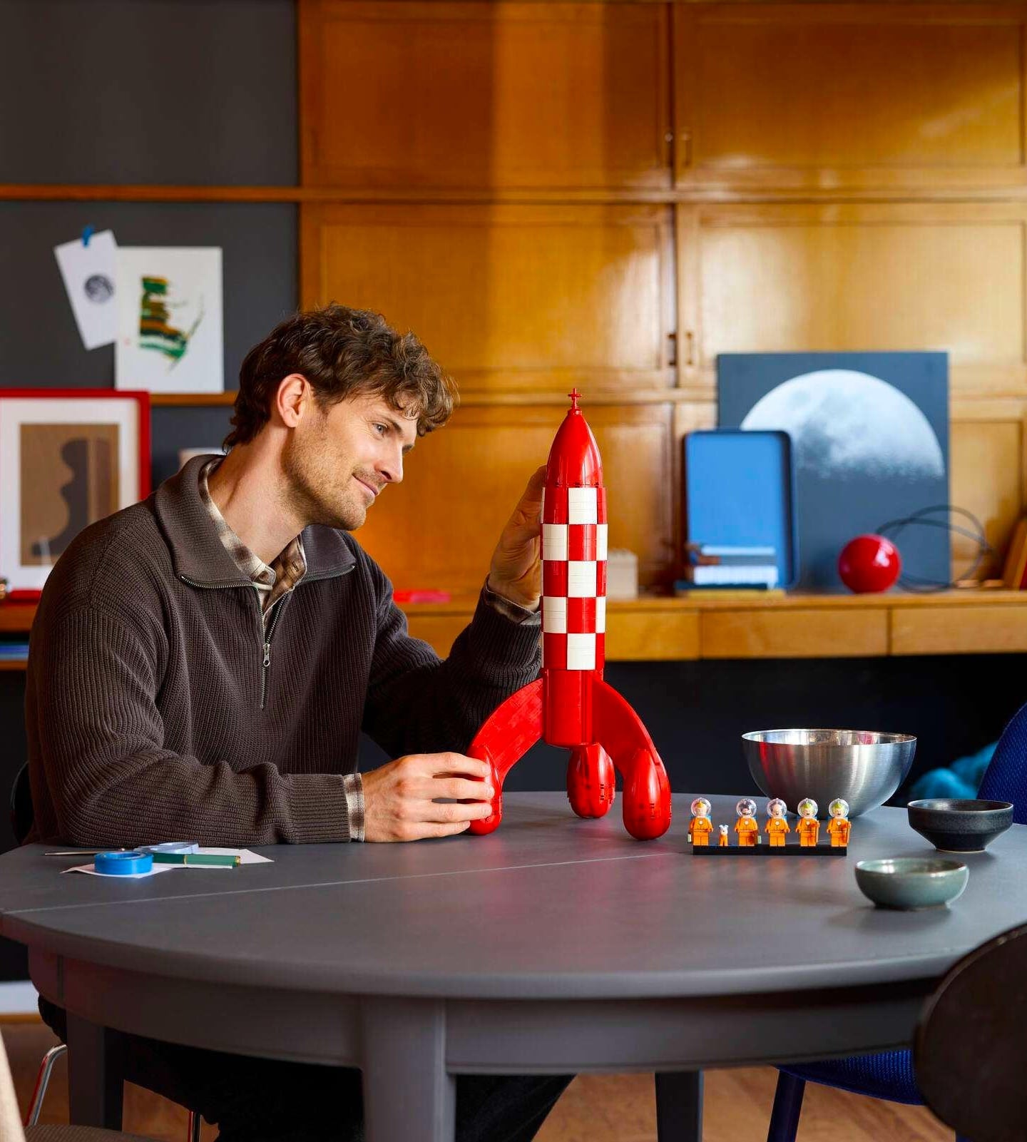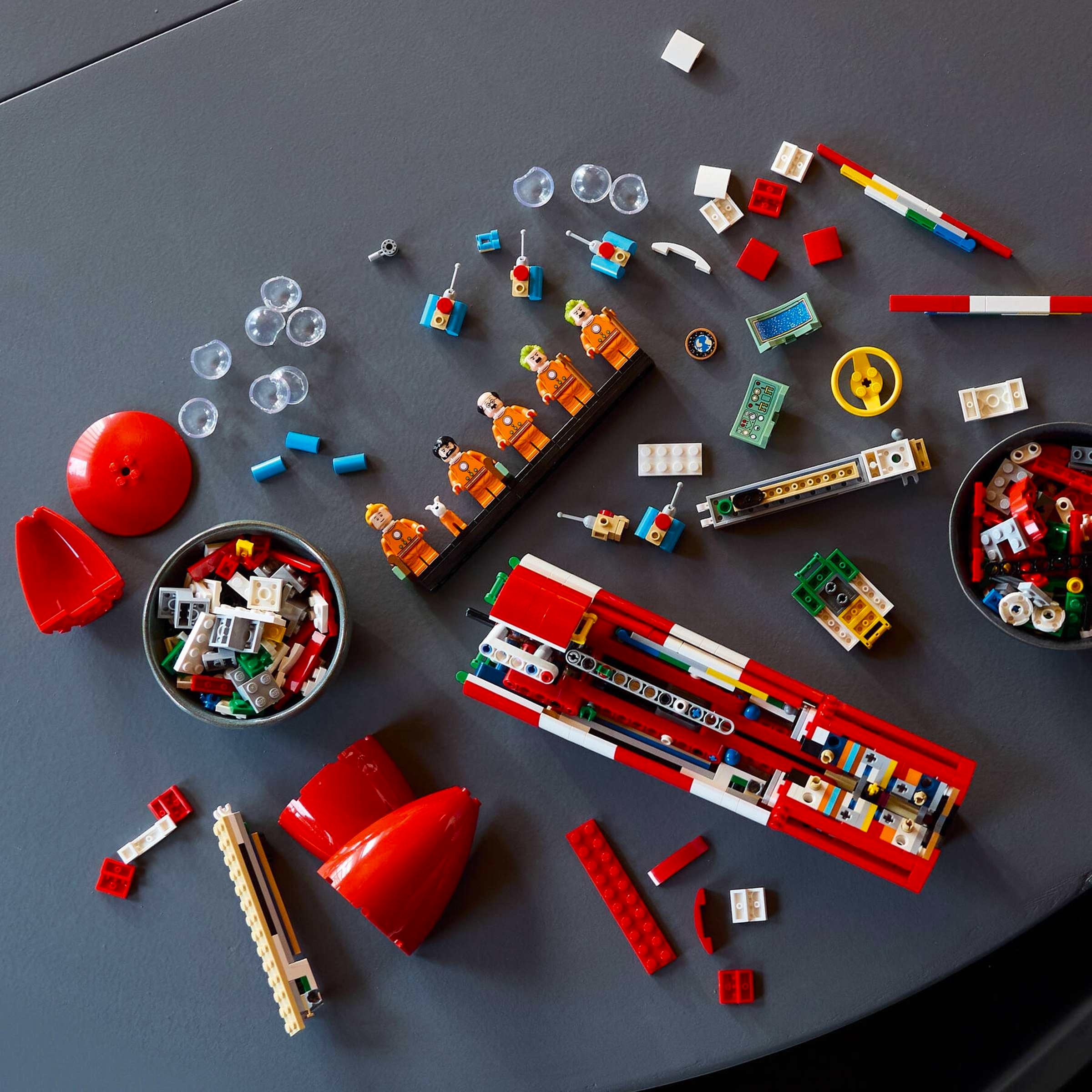 The set actually originated as a fan submission on the Lego Ideas platform by Portuguese designer Alexis Dos Santos, known by the alias Tkel86, who combined his love for The Adventures of Tintin with his love of the Lego Technic Space Shuttle to arrive at the concept.
