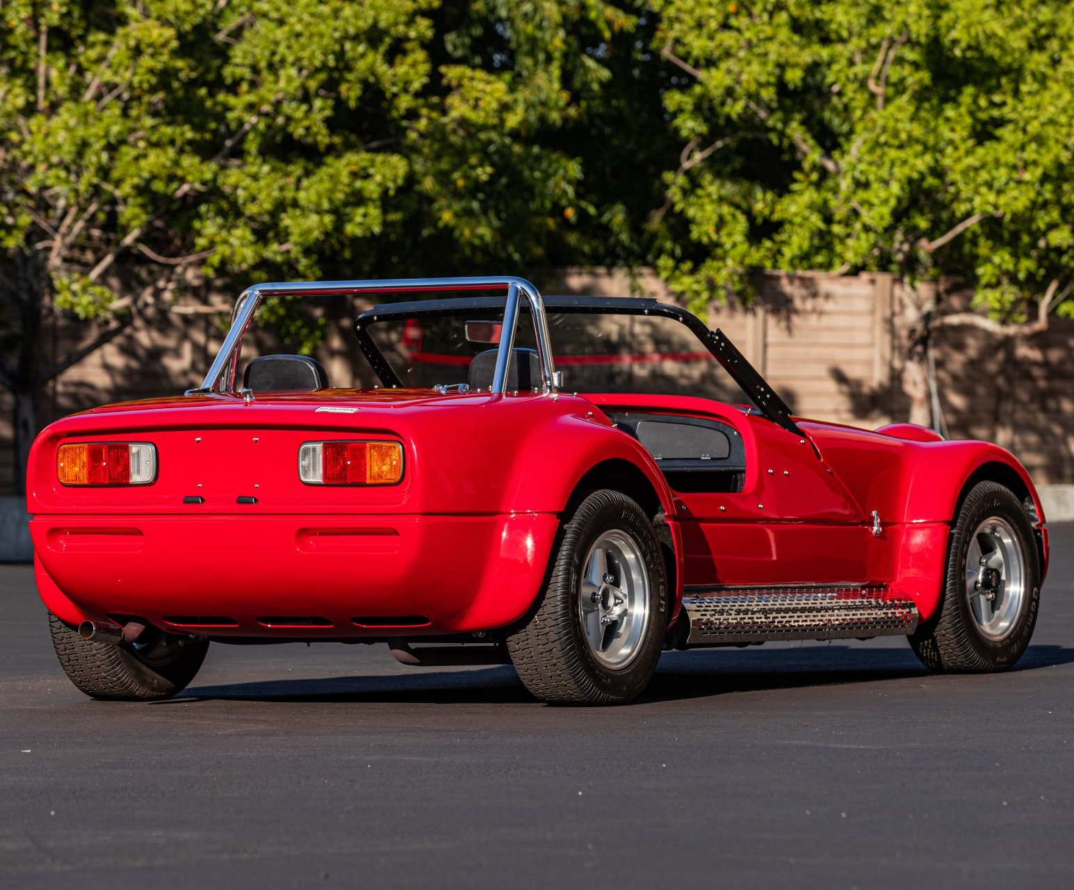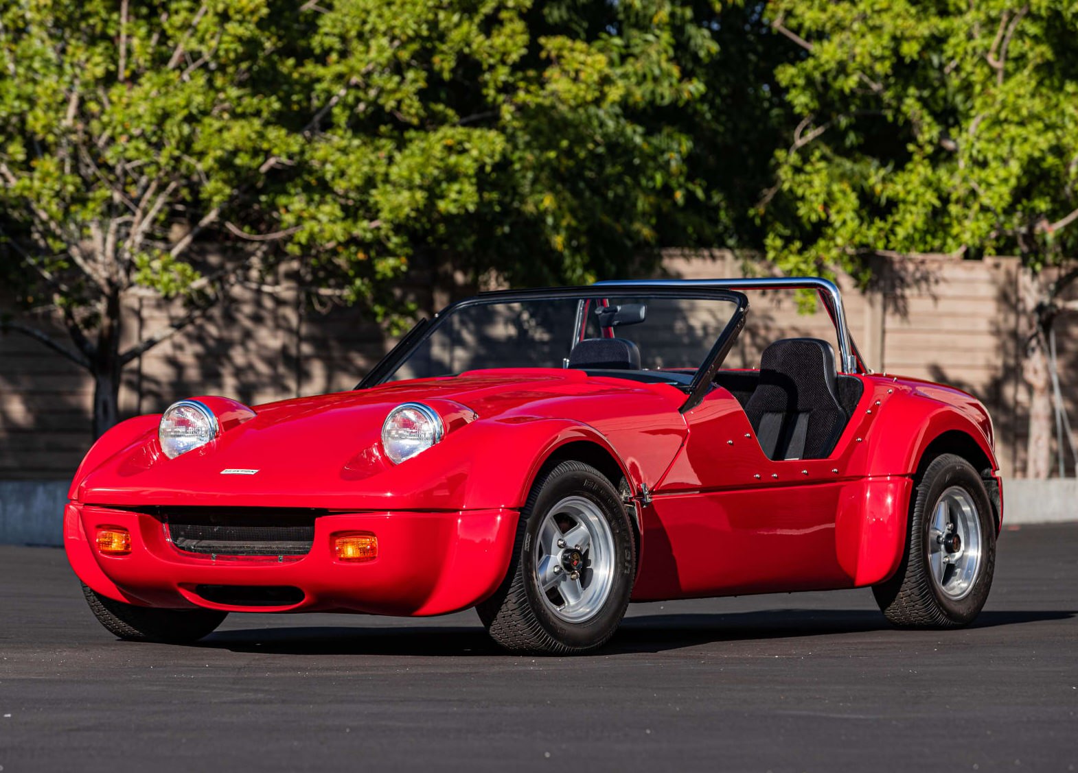 It has a lightweight fiberglass body with a clamshell-opening hood and it received a full, high-quality repaint in 2023. The car remains in immaculate condition and retains its minimalist, period-correct appearance throughout including a chrome roll bar, chrome exhaust heat shield on the passenger side, black tonneau cover, Simpson multi-point harnesses, and 13 inch Revolution four-spoke alloy wheels.