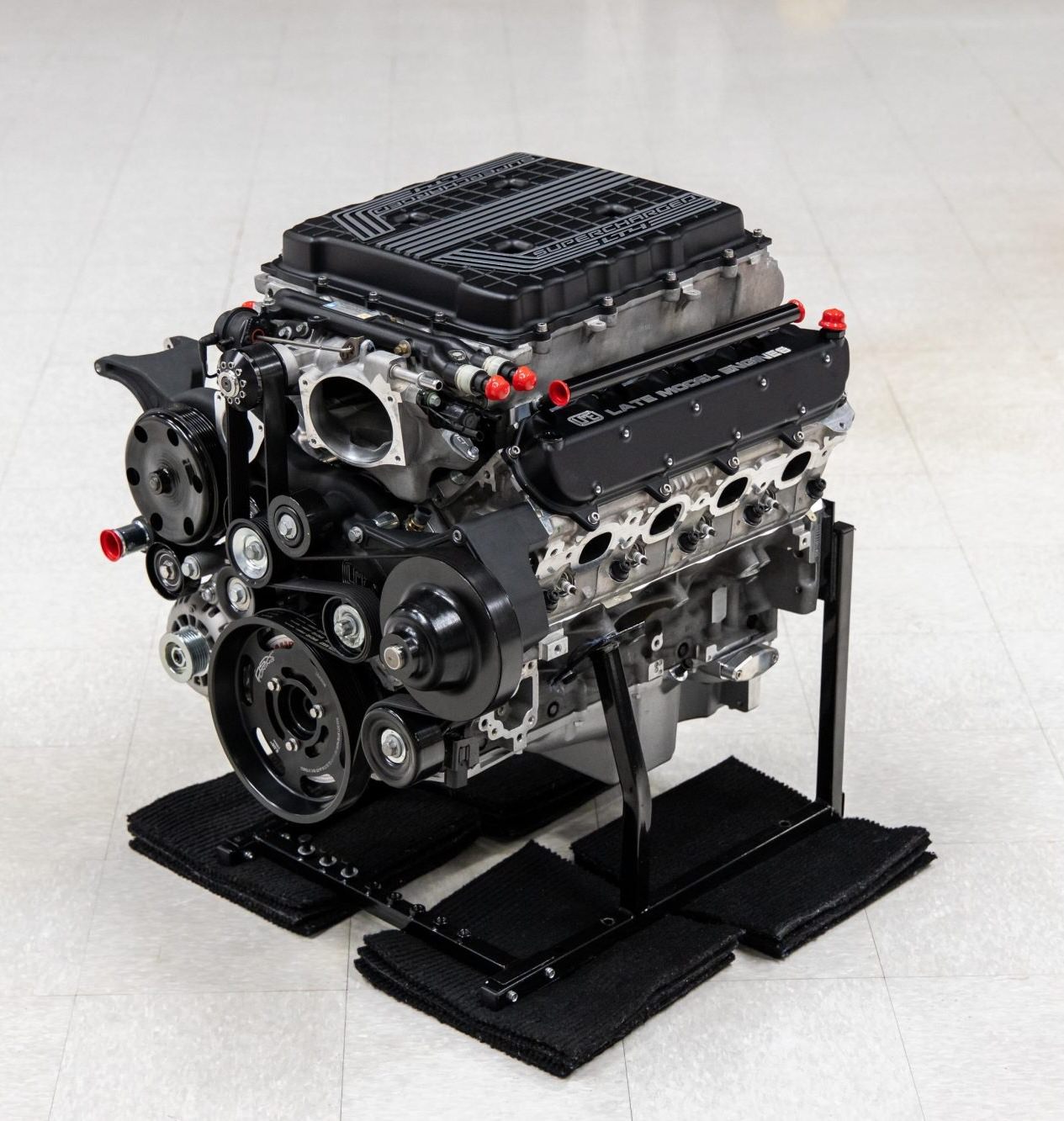 This is a Chevrolet Performance LT4 crate engine that was modified by Late Model Engines of Houston, Texas. It now produces a dyno-proven 821 bhp and 797 lb ft of torque, and the engine is tuned to run on 93 octane pump gas.
