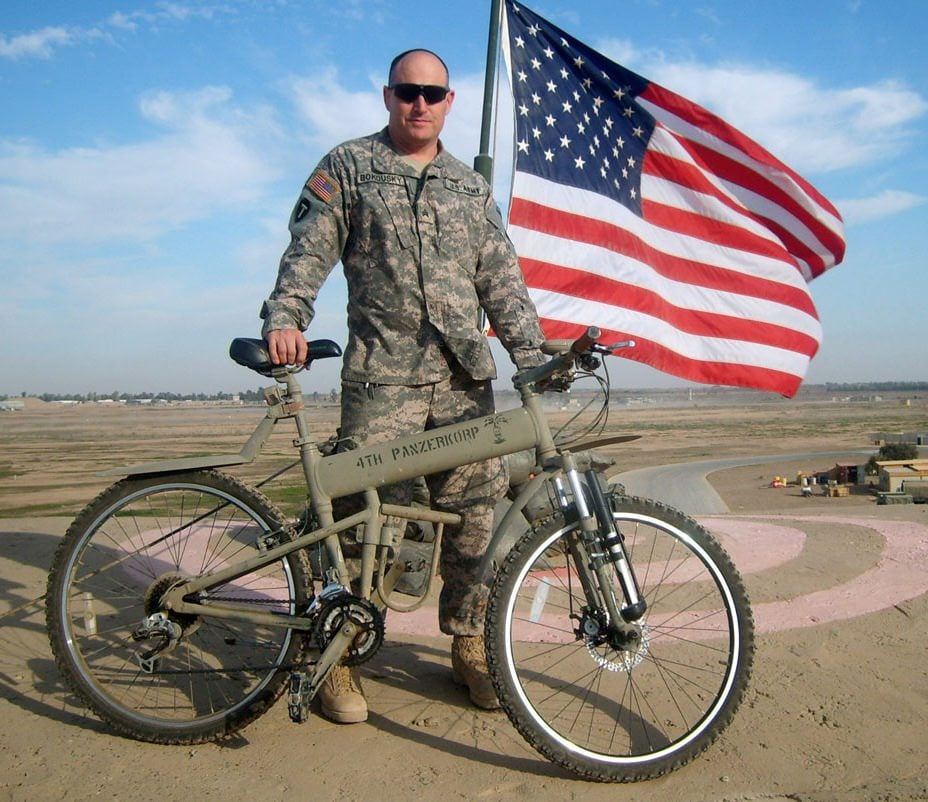 The Montague Paratrooper is a heavy duty folding mountain bike that was developed thanks to a grant from DARPA (the Defense Advanced Research Projects Agency) for use by US Special Forces when parachuting into enemy territory.
