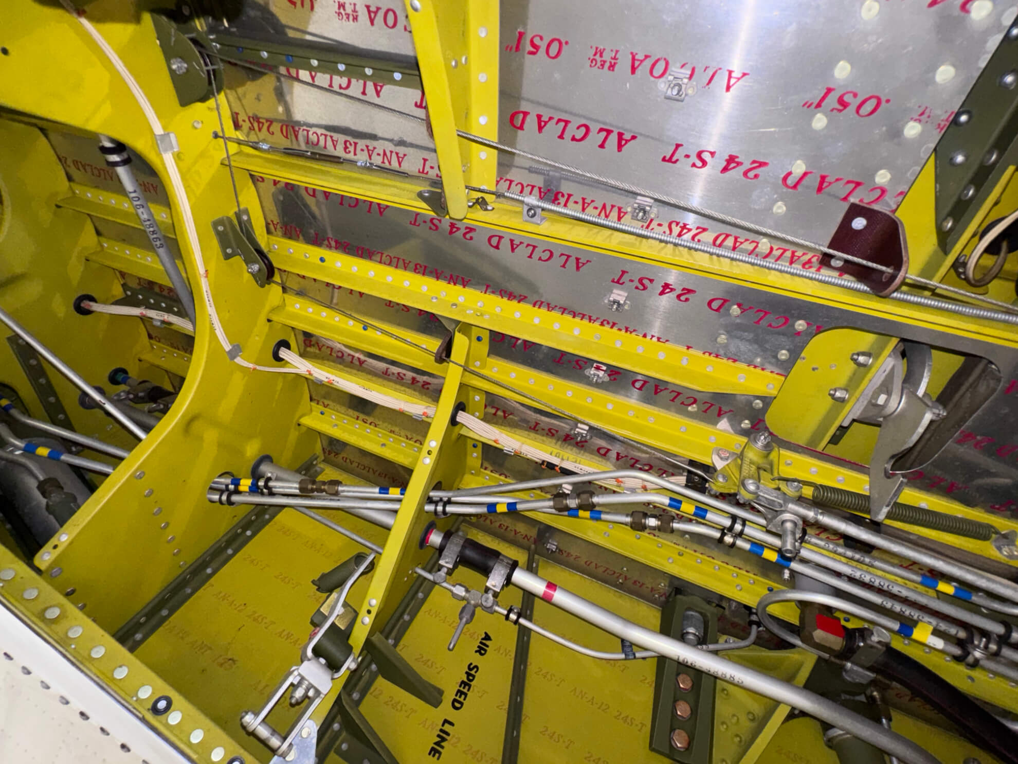 The only major parts on this aircraft that aren’t original are the engine mounts, ailerons, and flaps – everything else is as it was originally installed by workers at North American Aviation back in the mid-1940s in the midst of WWII.