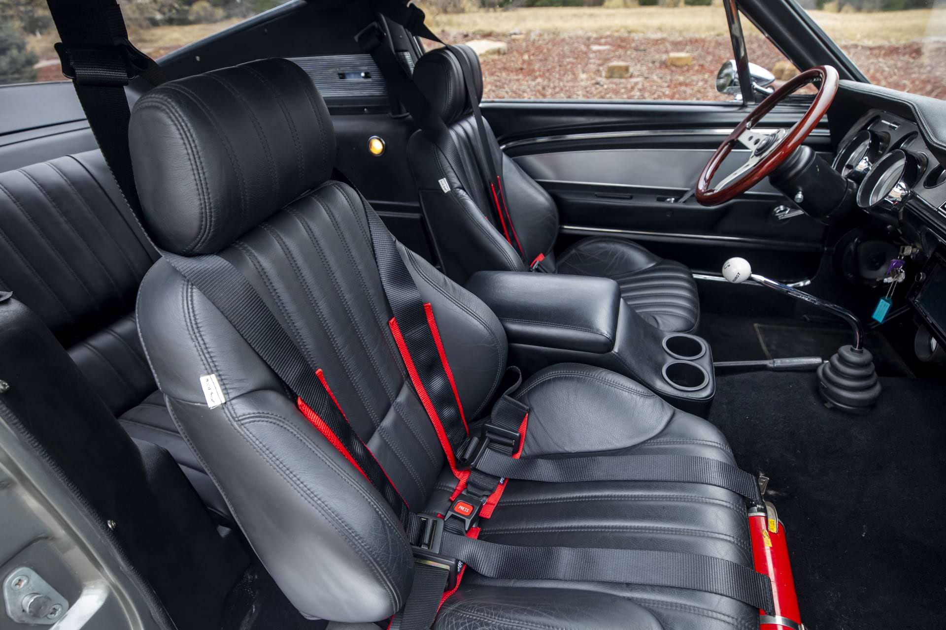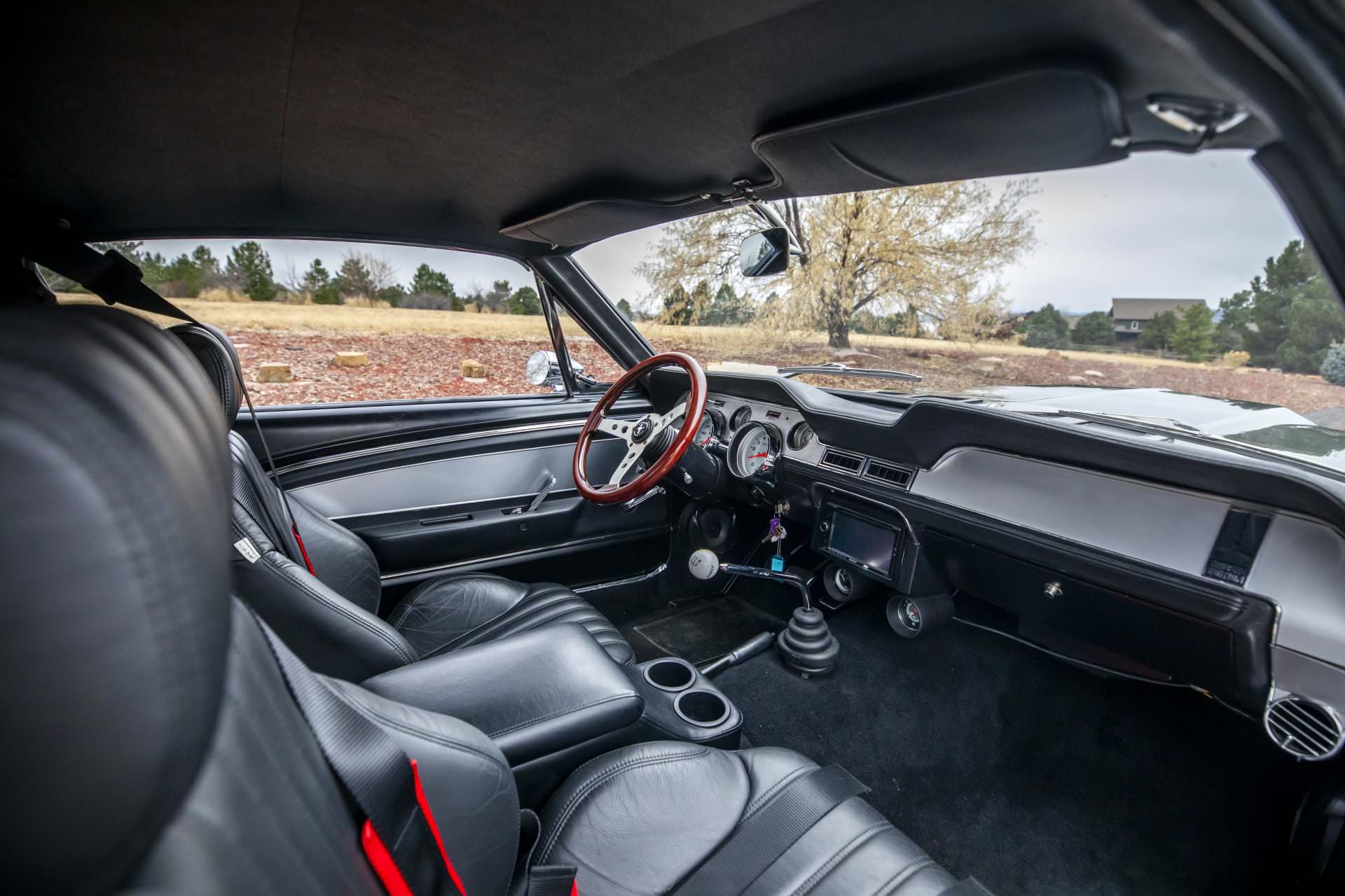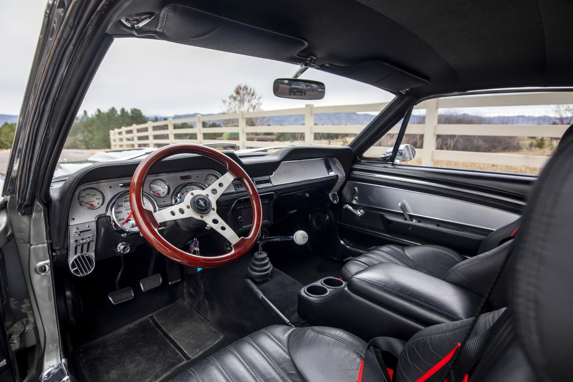 - The interior has been comprehensively modernized with black leather upholstery, front bucket seats fitted with harnesses, AutoMeter gauges, air conditioning from Classic Auto, a touchscreen stereo, and a wood-rimmed steering wheel. The car also comes with a certificate of authenticity confirming its licensed Eleanor status.