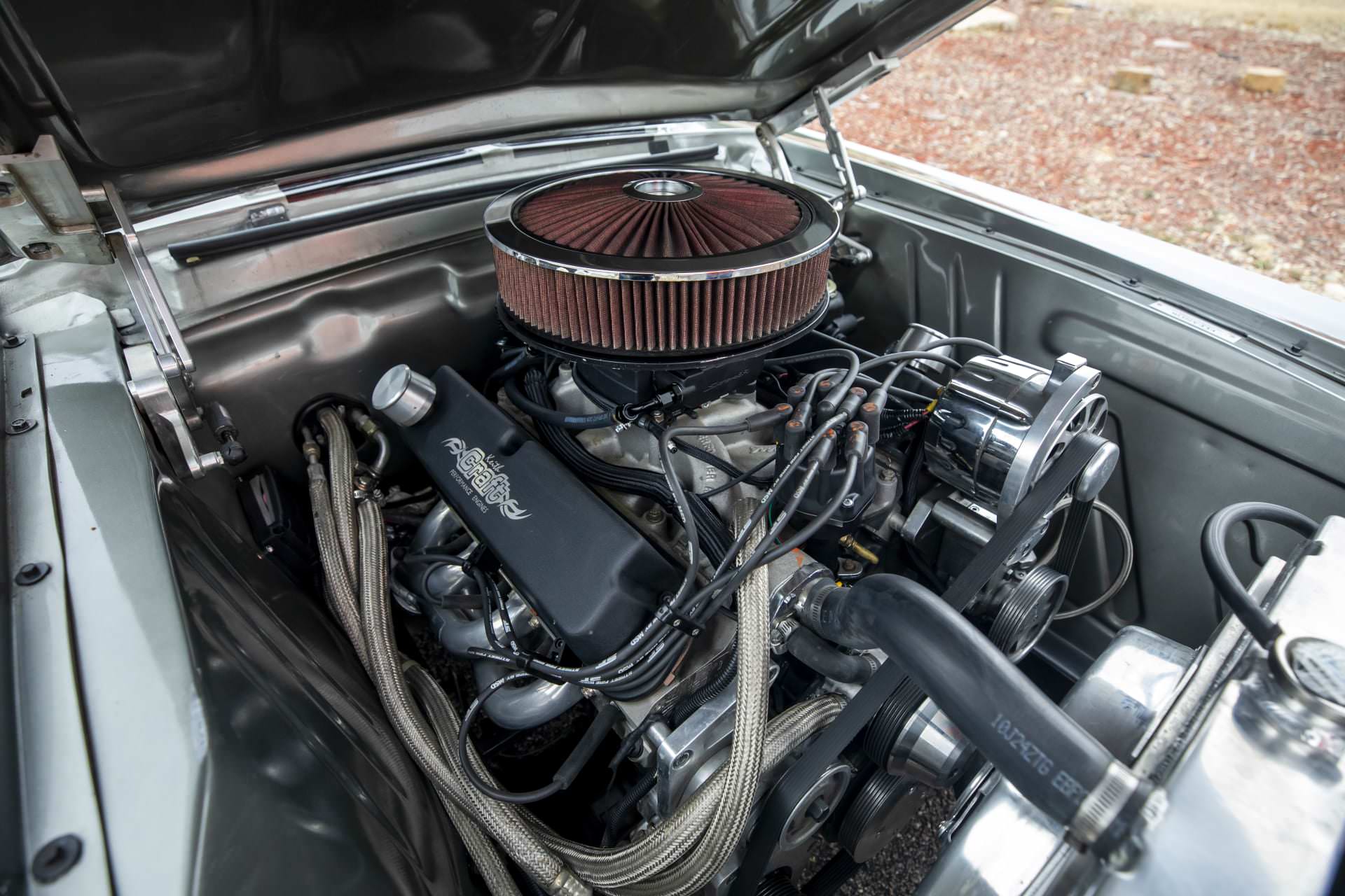 Under the hood you’ll find a Keith Craft 408 cubic inch (6.7 liter) Windsor V8, this engine was built with an Eagle crank and connecting rods, a Comp Cams hydraulic roller camshaft, AFR heads, a Holley Sniper EFI system, and JBA headers and a dual exhaust system.