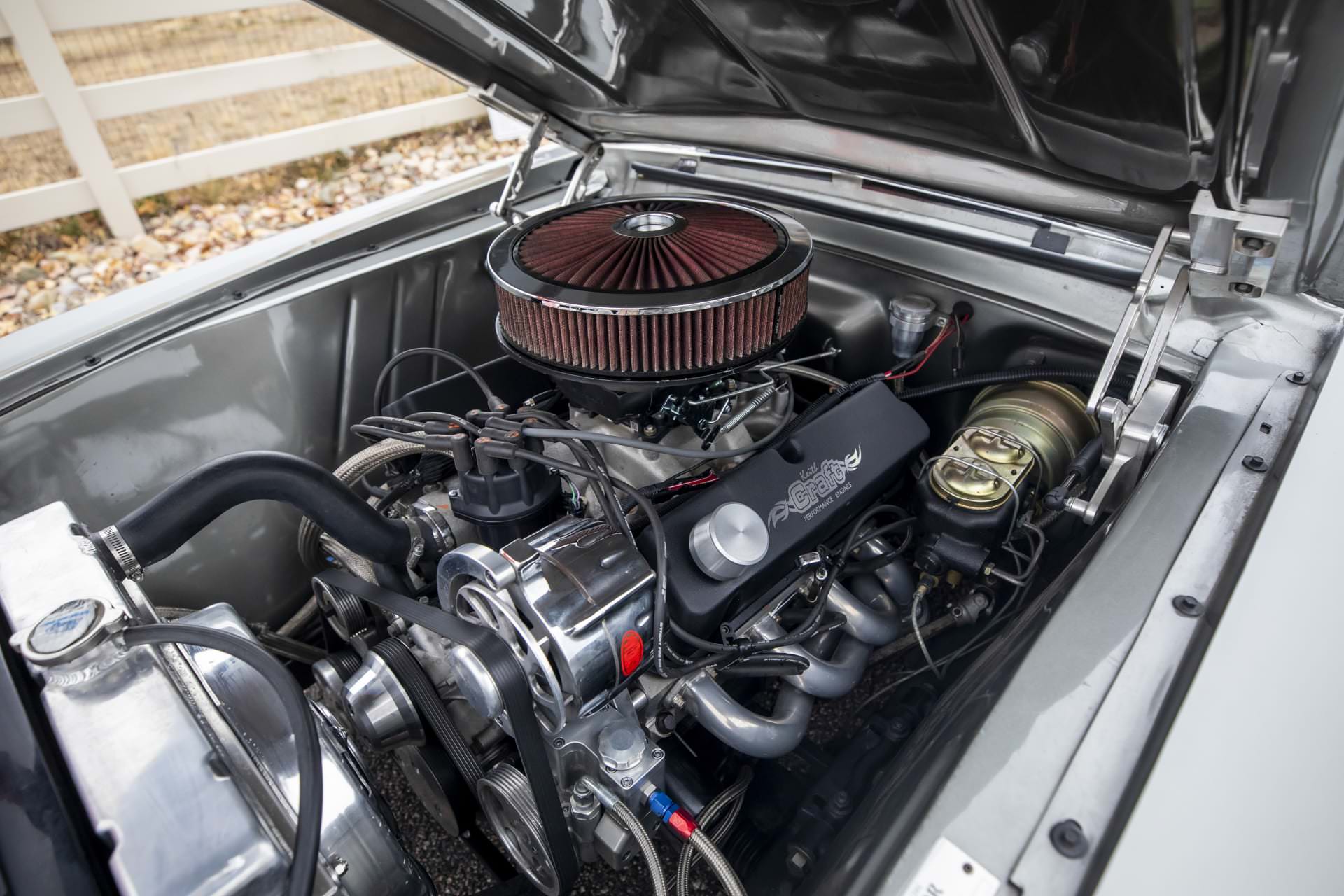 The car is now powered by a Keith Craft 408 cubic inch Windsor V8 mated to a Tremec T56 6-speed manual transmission and a Ford 9-inch rear end. It rides on adjustable coilovers, it has four-wheel power disc brakes, and it has a thoroughly updated interior.
